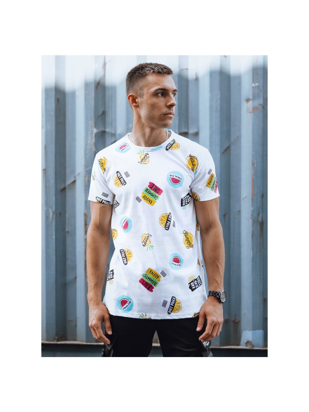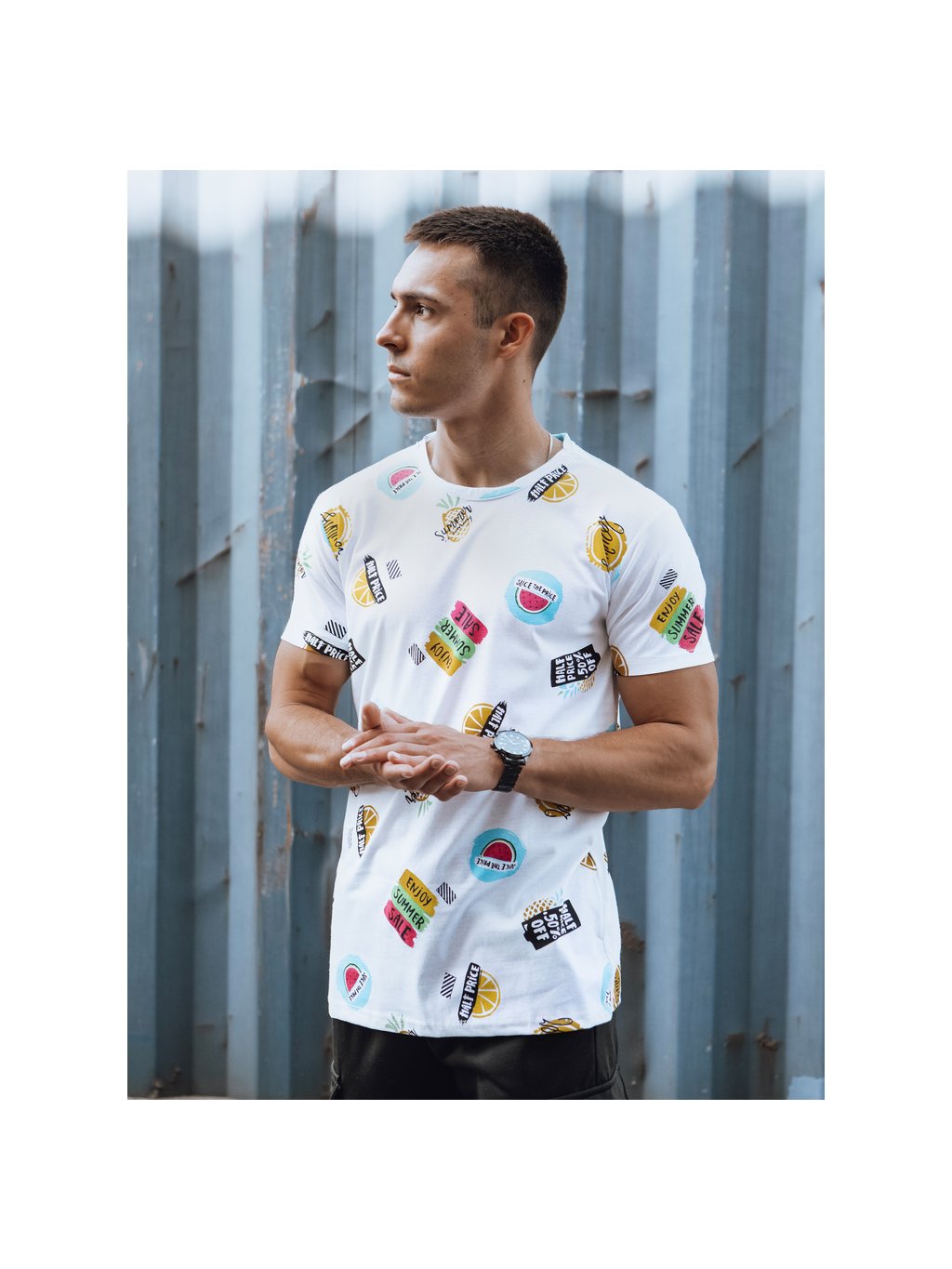 (Méret 2XL) Fehér férfi póló nyomattal SUMMER