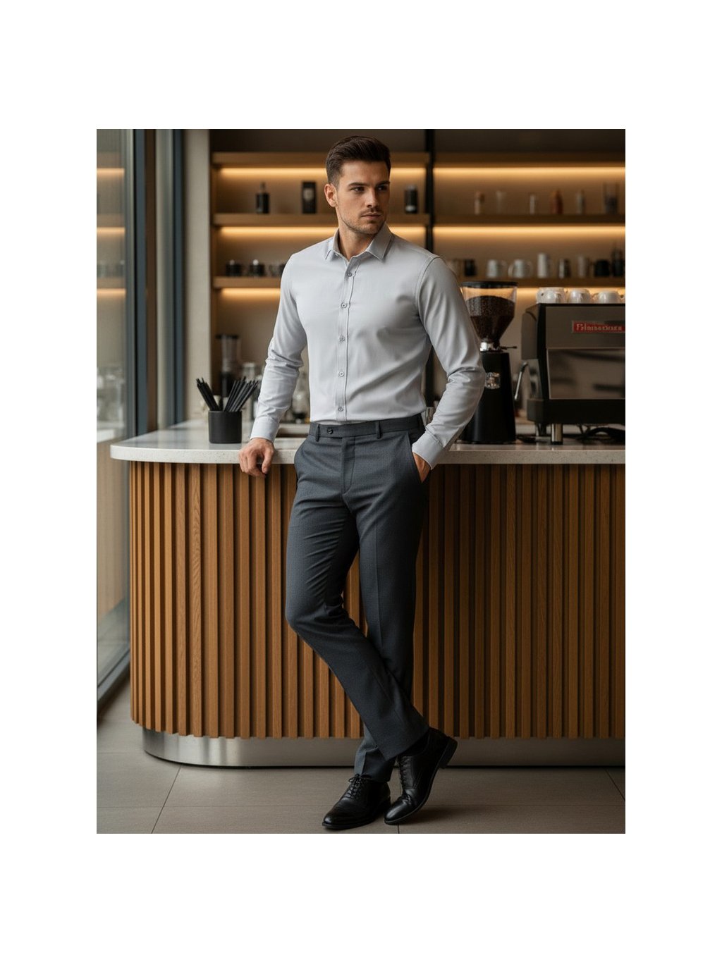 (Méret 2XL) Világosszürke egyszínű férfi ing