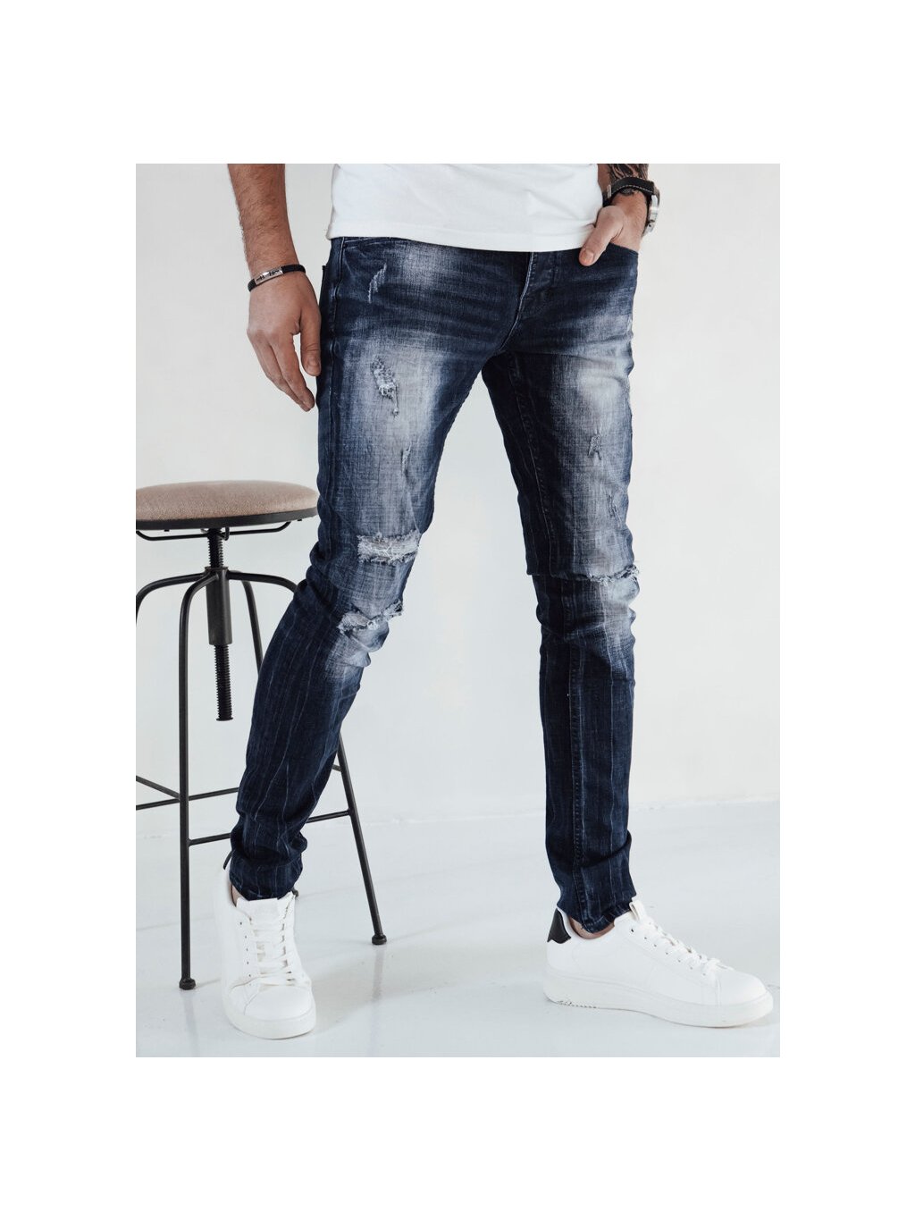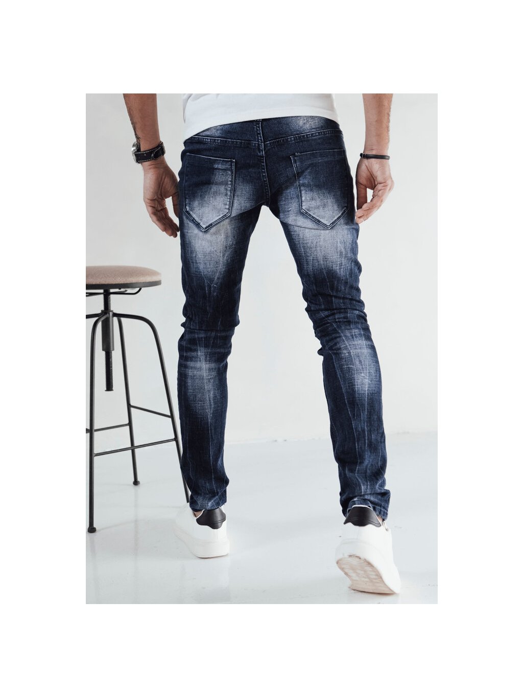 (Méret 34) Sötétkék férfi farmer fehér kopásokkal