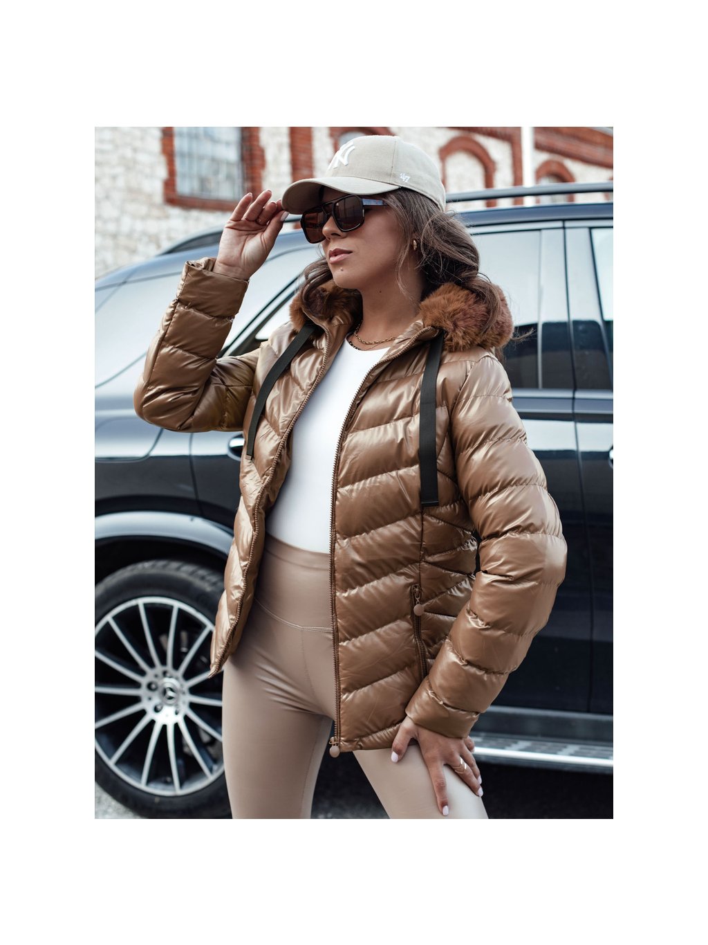 (Méret M) Barna fényes steppelt kabát MIRIAL