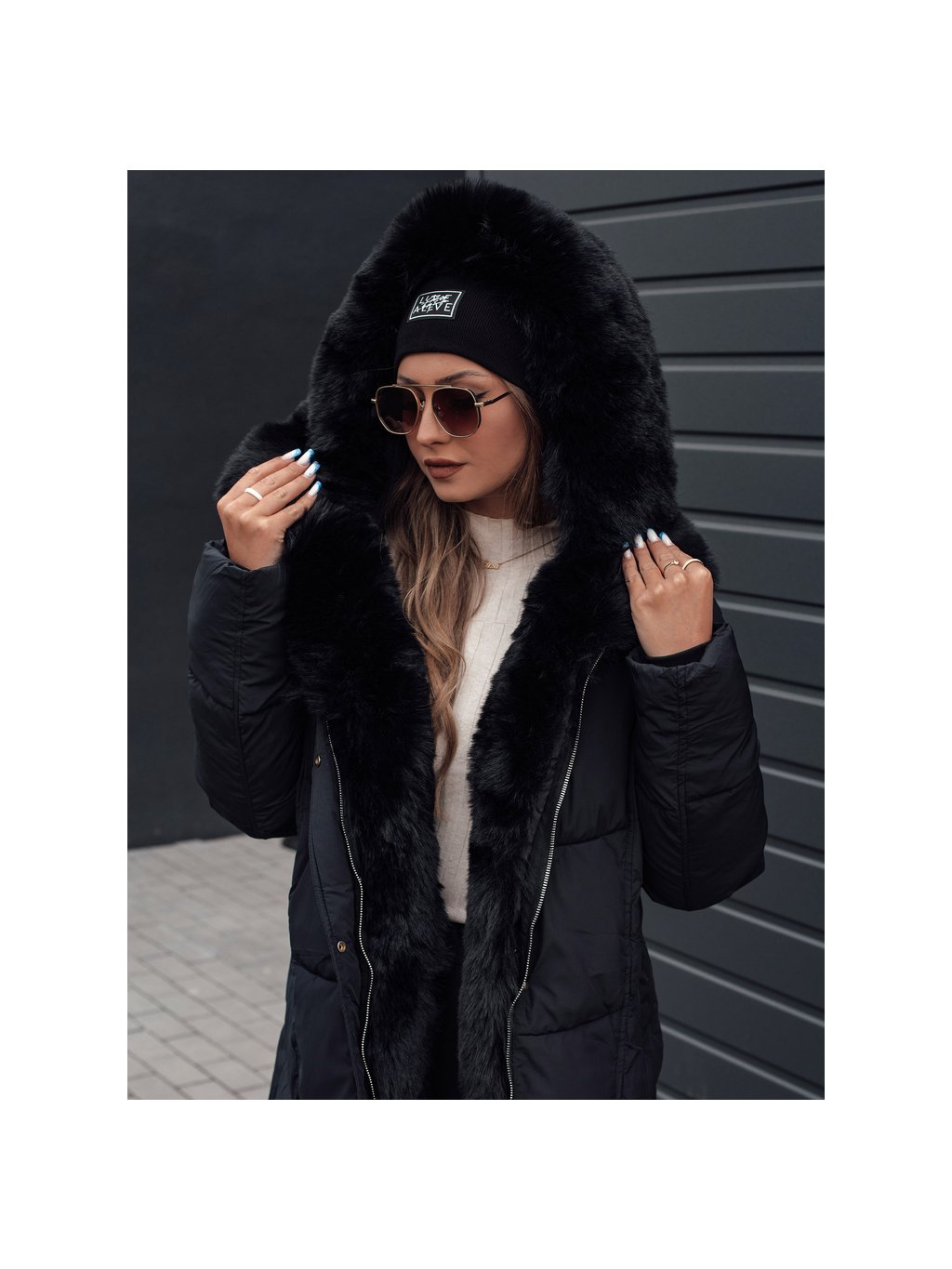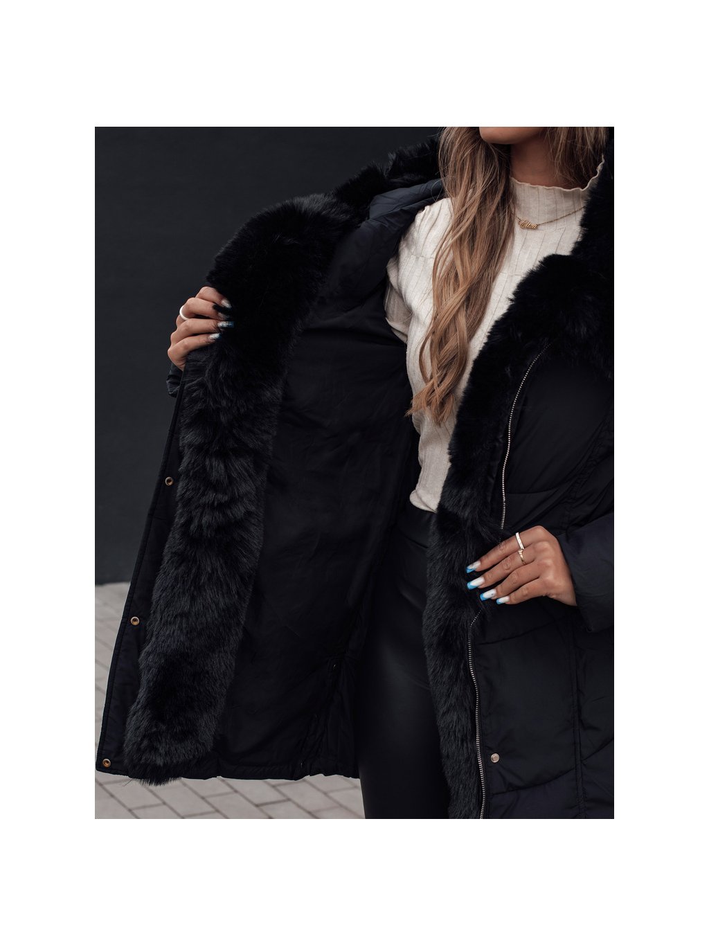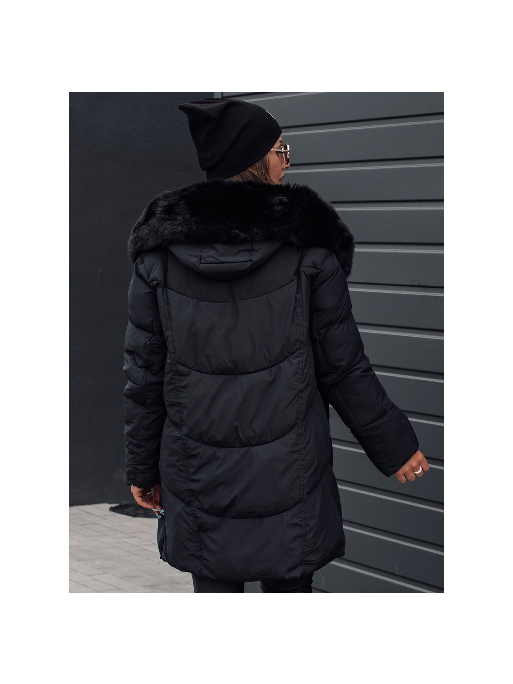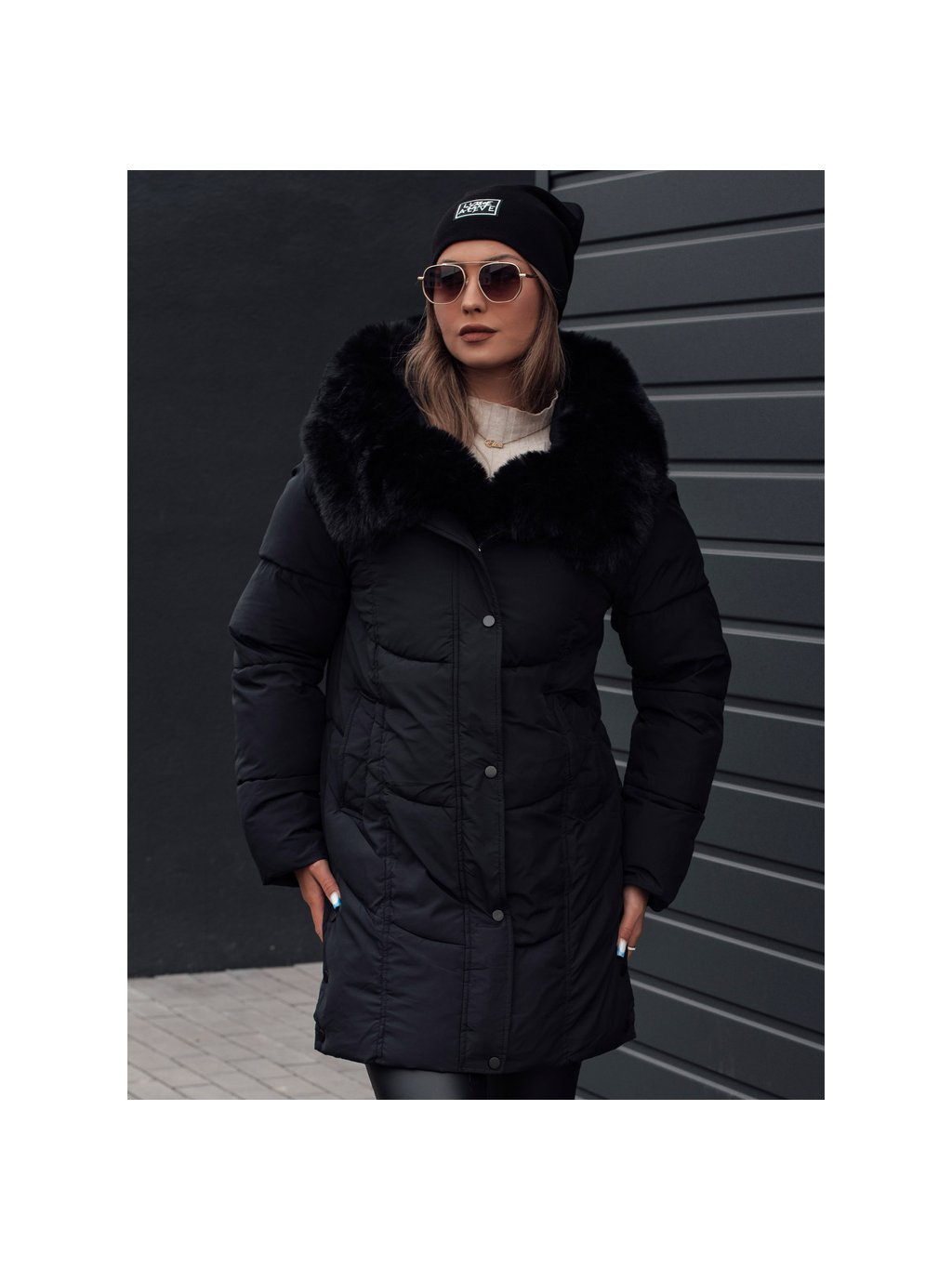 (Méret M) Női fekete steppelt kabát szőrmével MORISIO