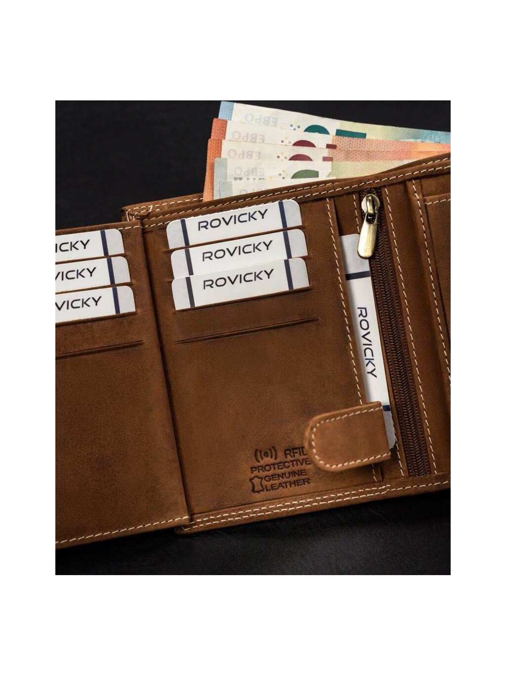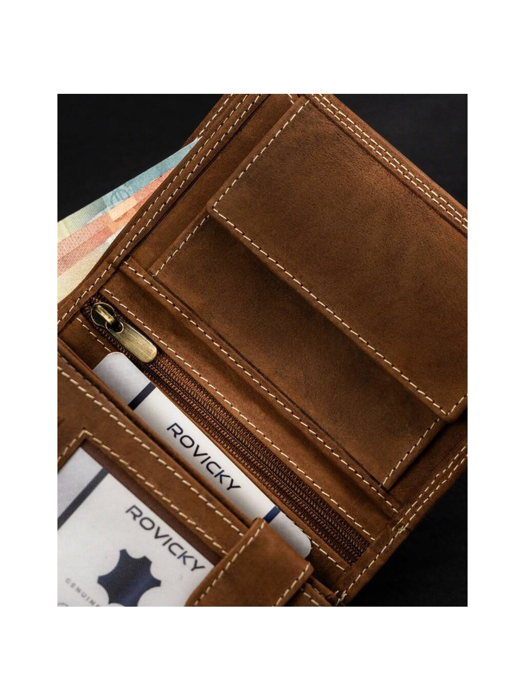 - 1 cipzáras rekesz a pénztárca közepén