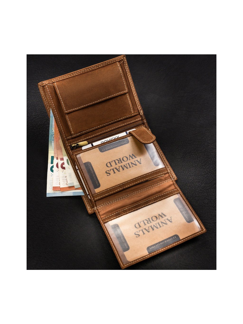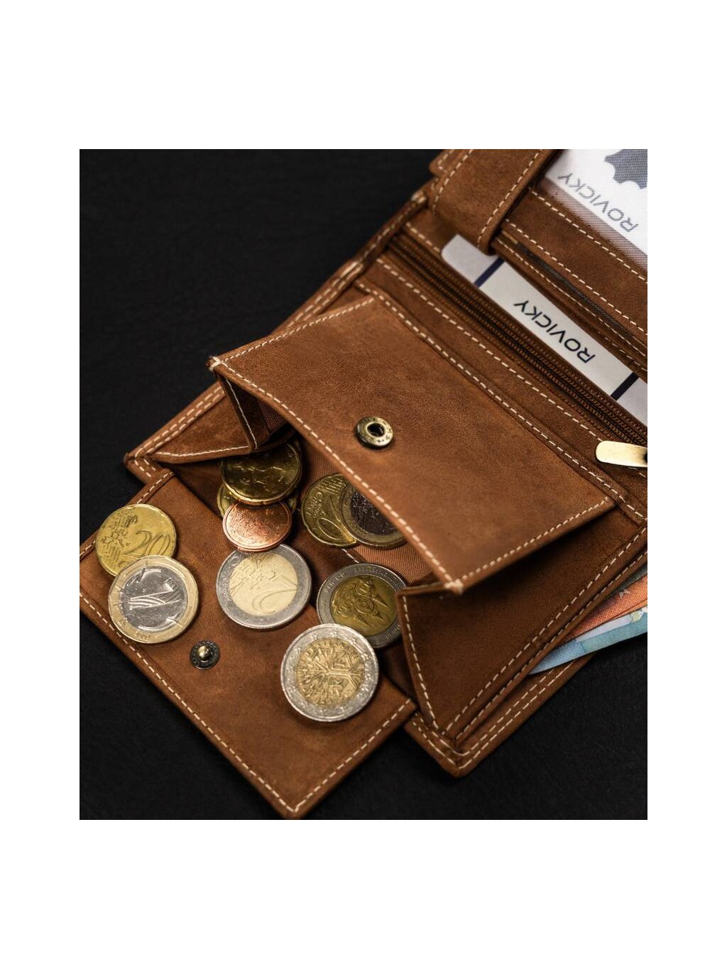 - 1 cipzáras rekesz a pénztárca közepén