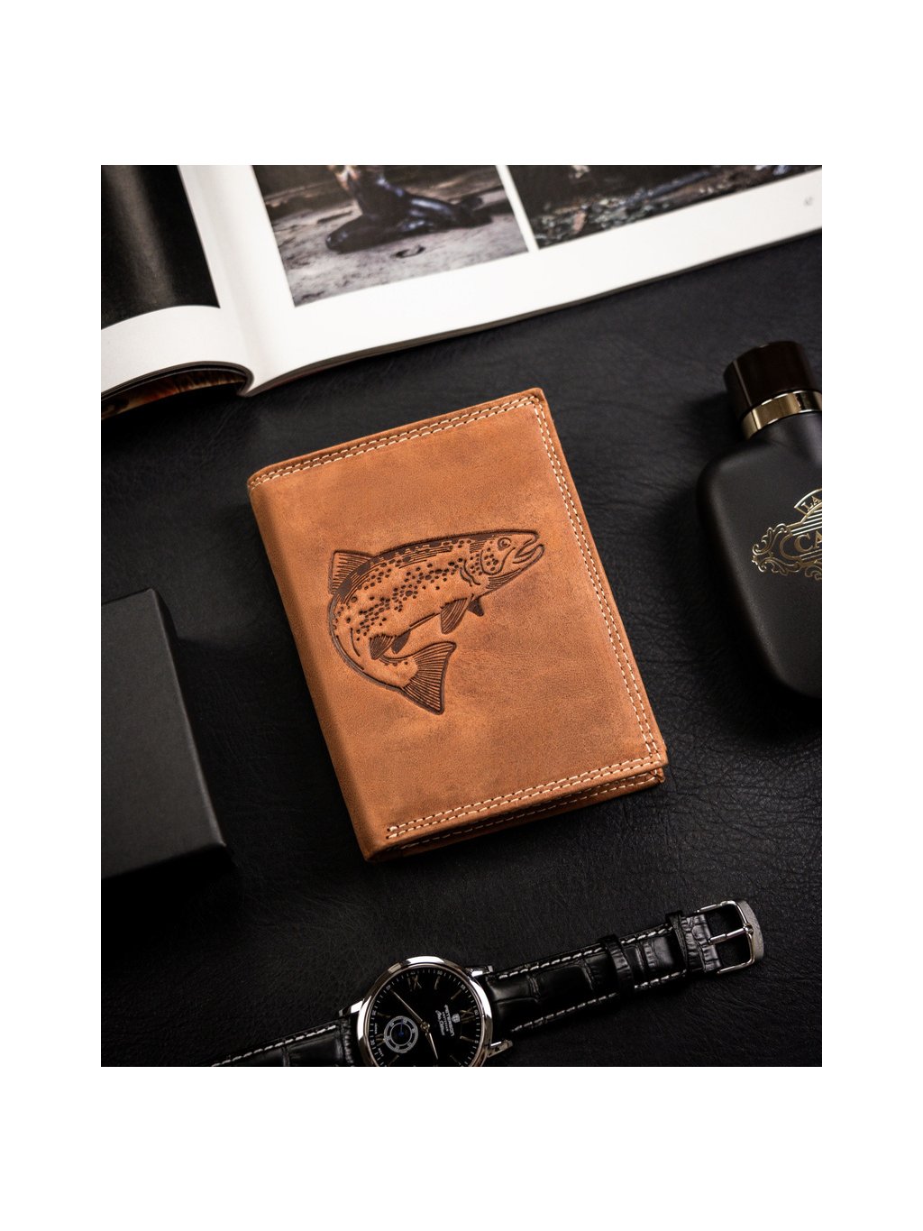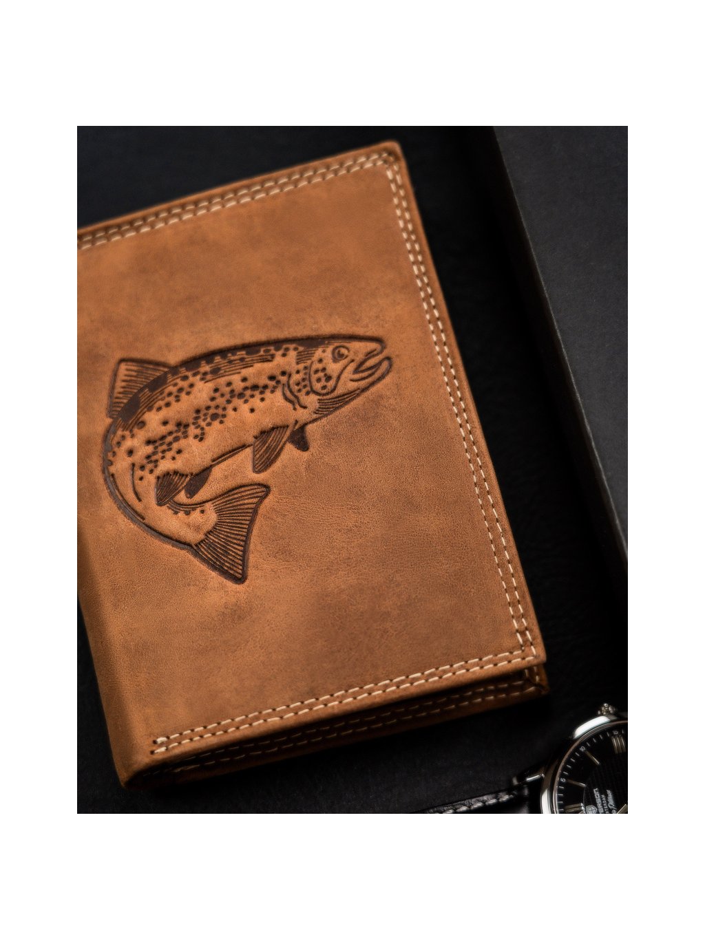 Always Wild barna bőr pénztárca dombornyomott hal mintával A144