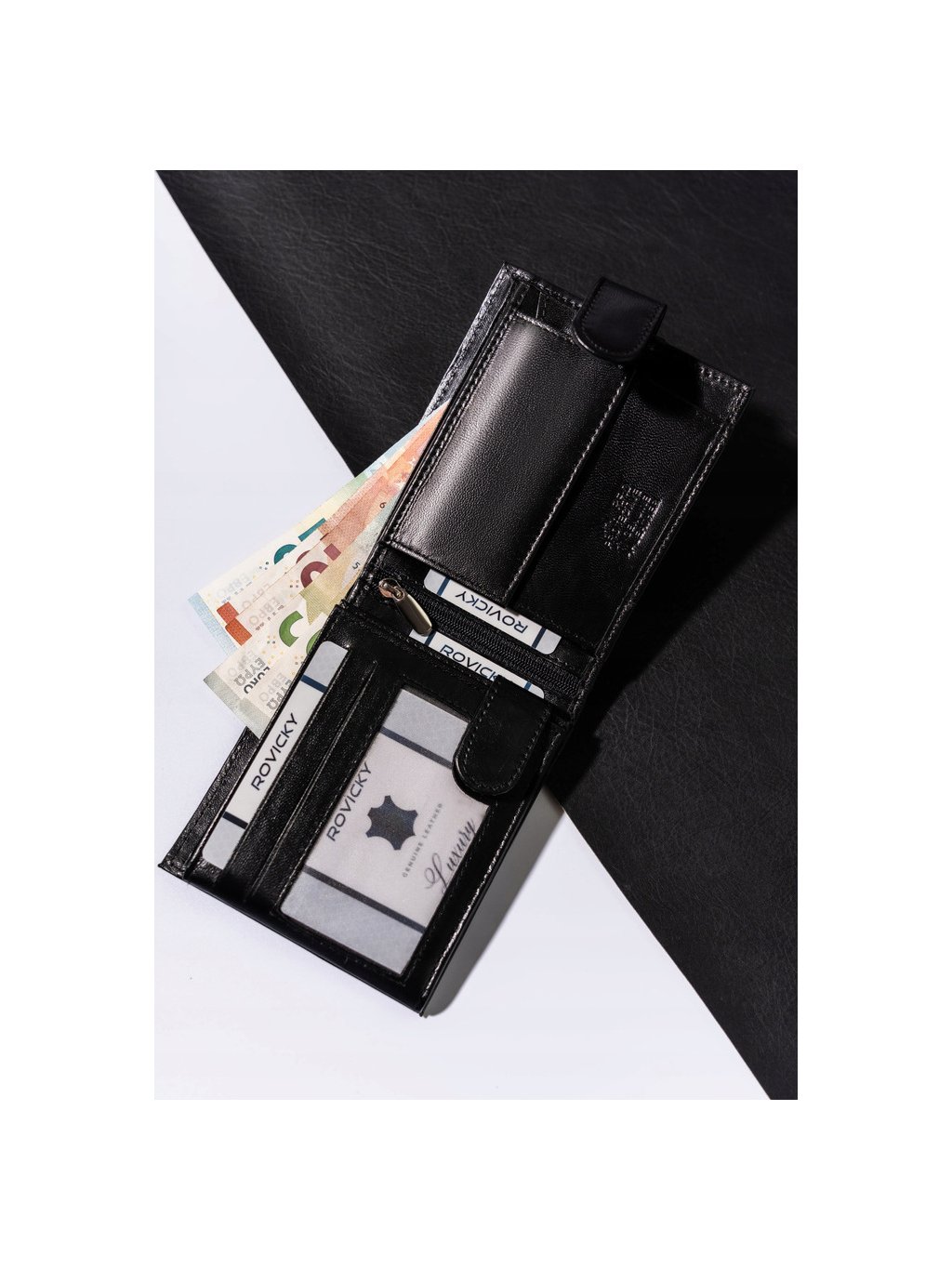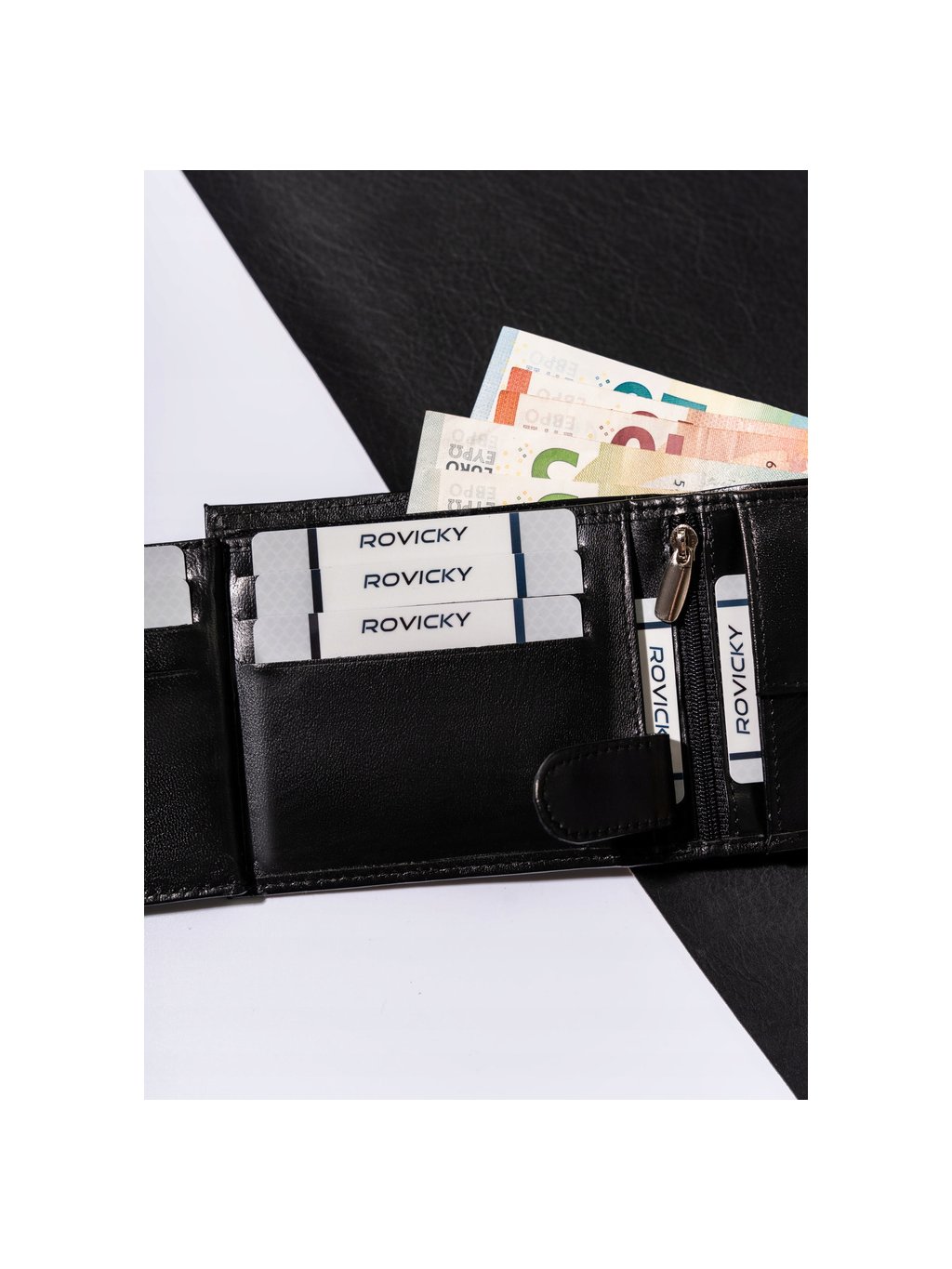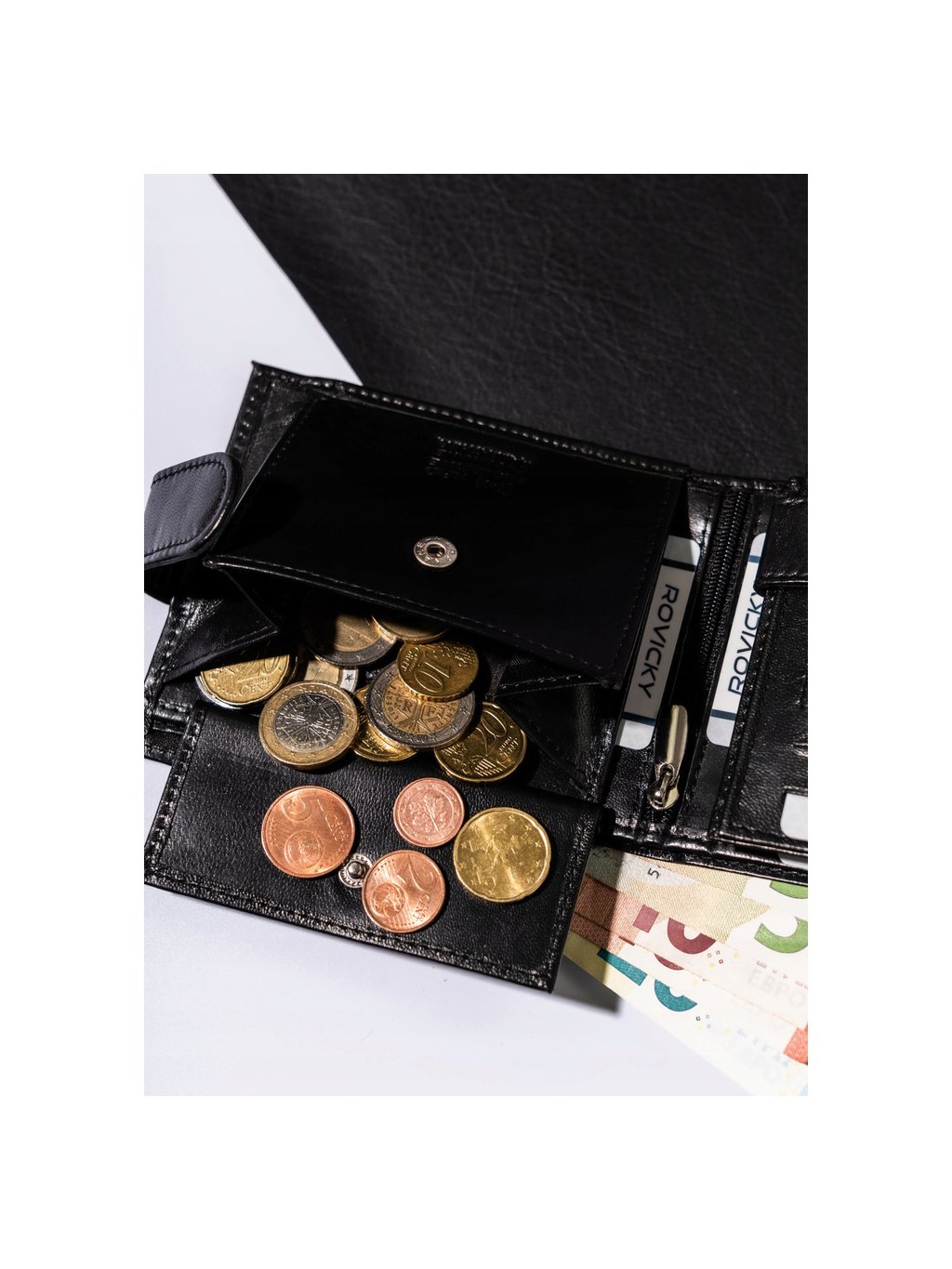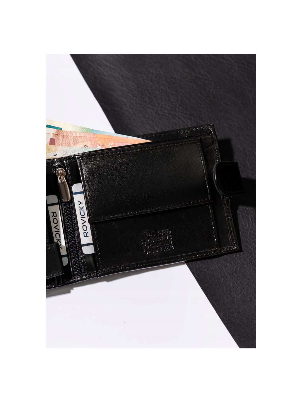 - 1 cipzáras rekesz a pénztárca középső részén