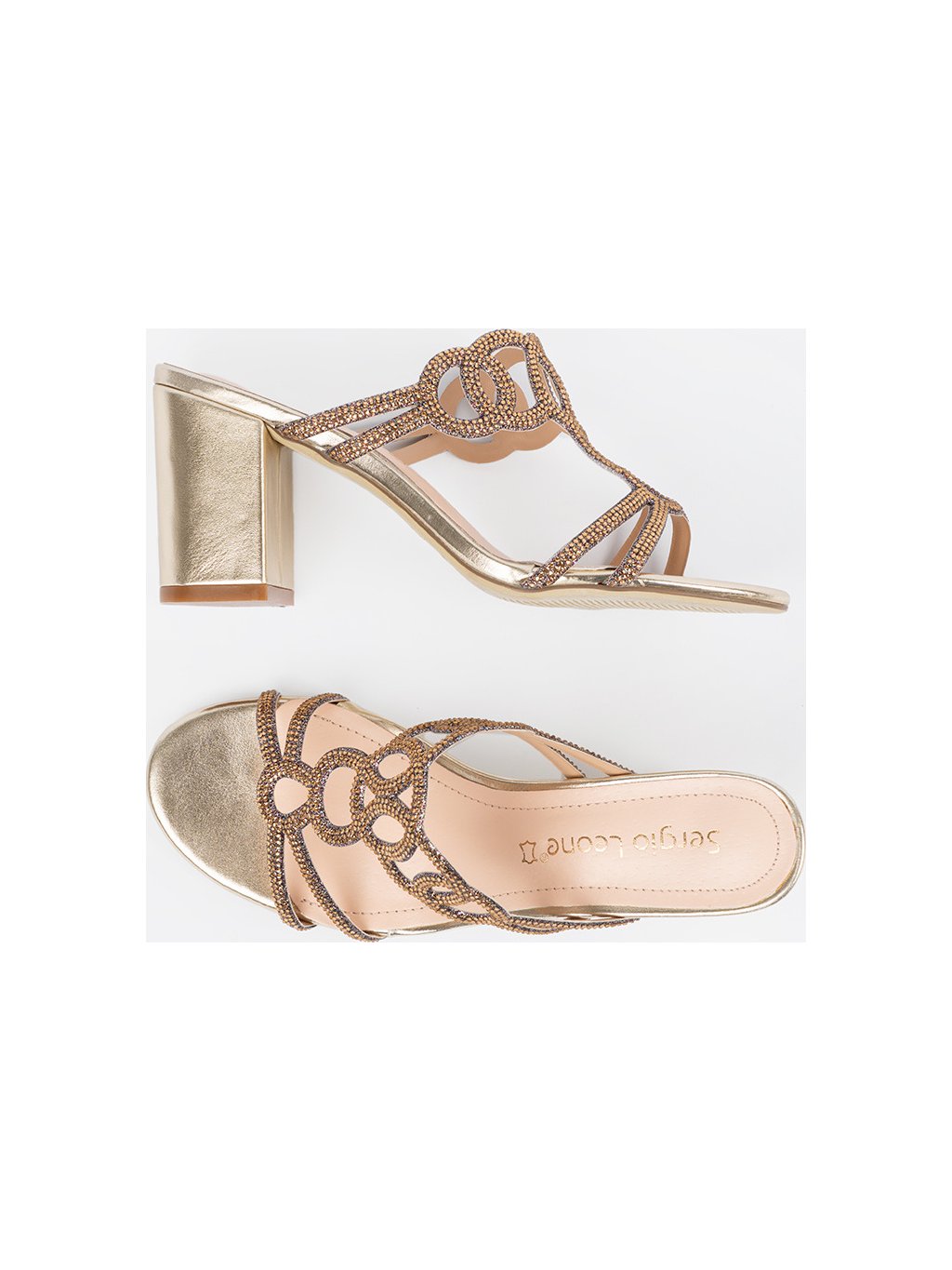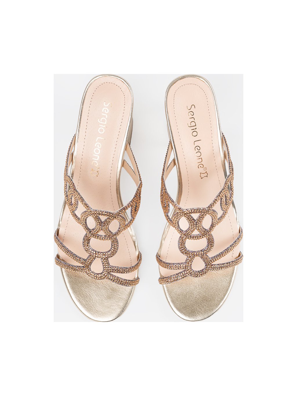 Arany női blokk sarkú papucs Sergio Leone, sarok 8-10 cm