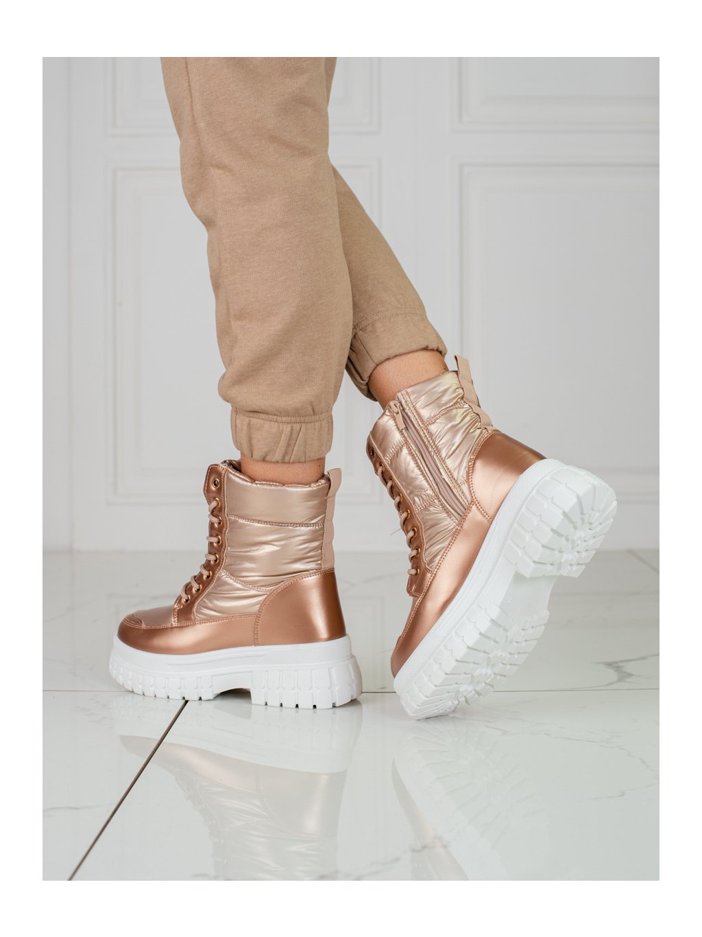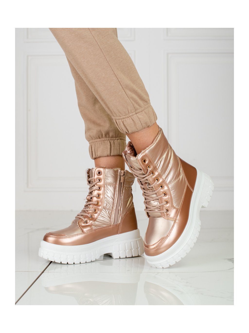 Arany női csizma fűzővel