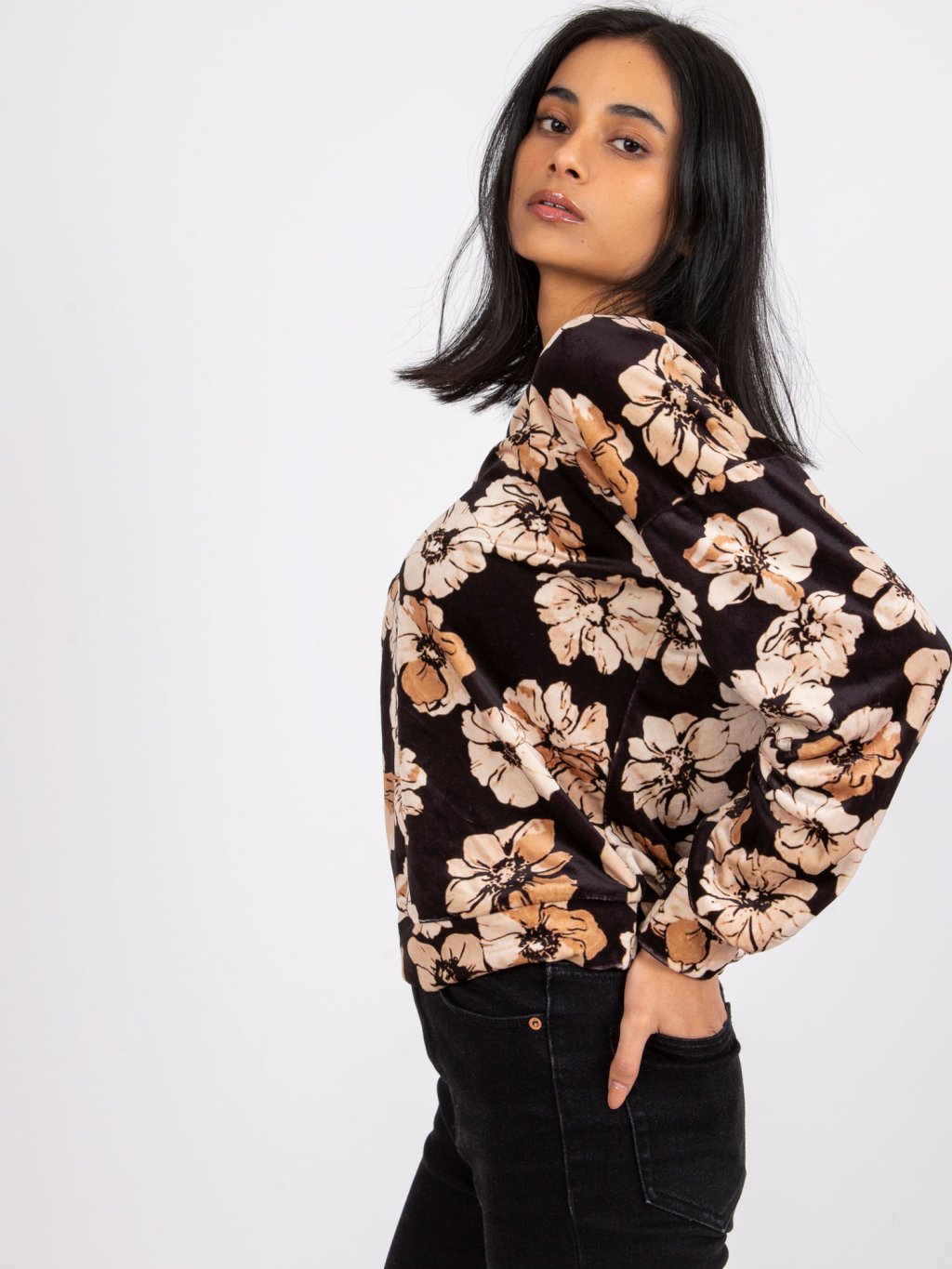Aurora fekete-bézs blúz virágokkal és lánccal hátul