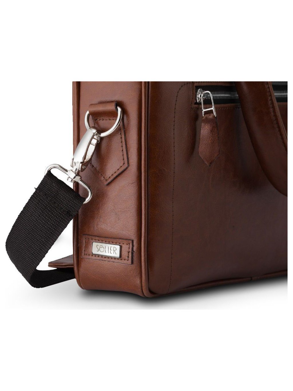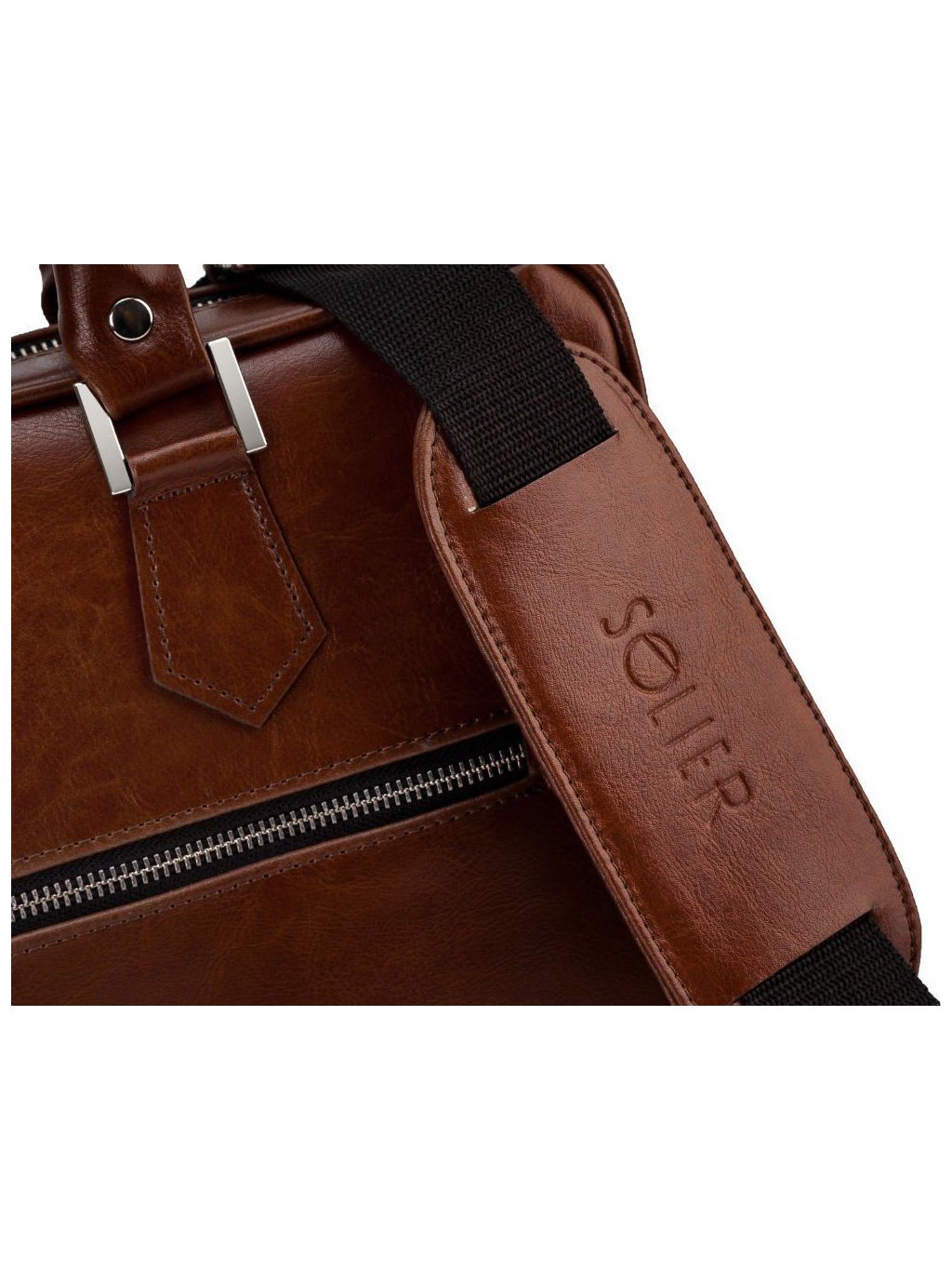 - Kényelmes bőr fogantyúk és állítható vállpánt.