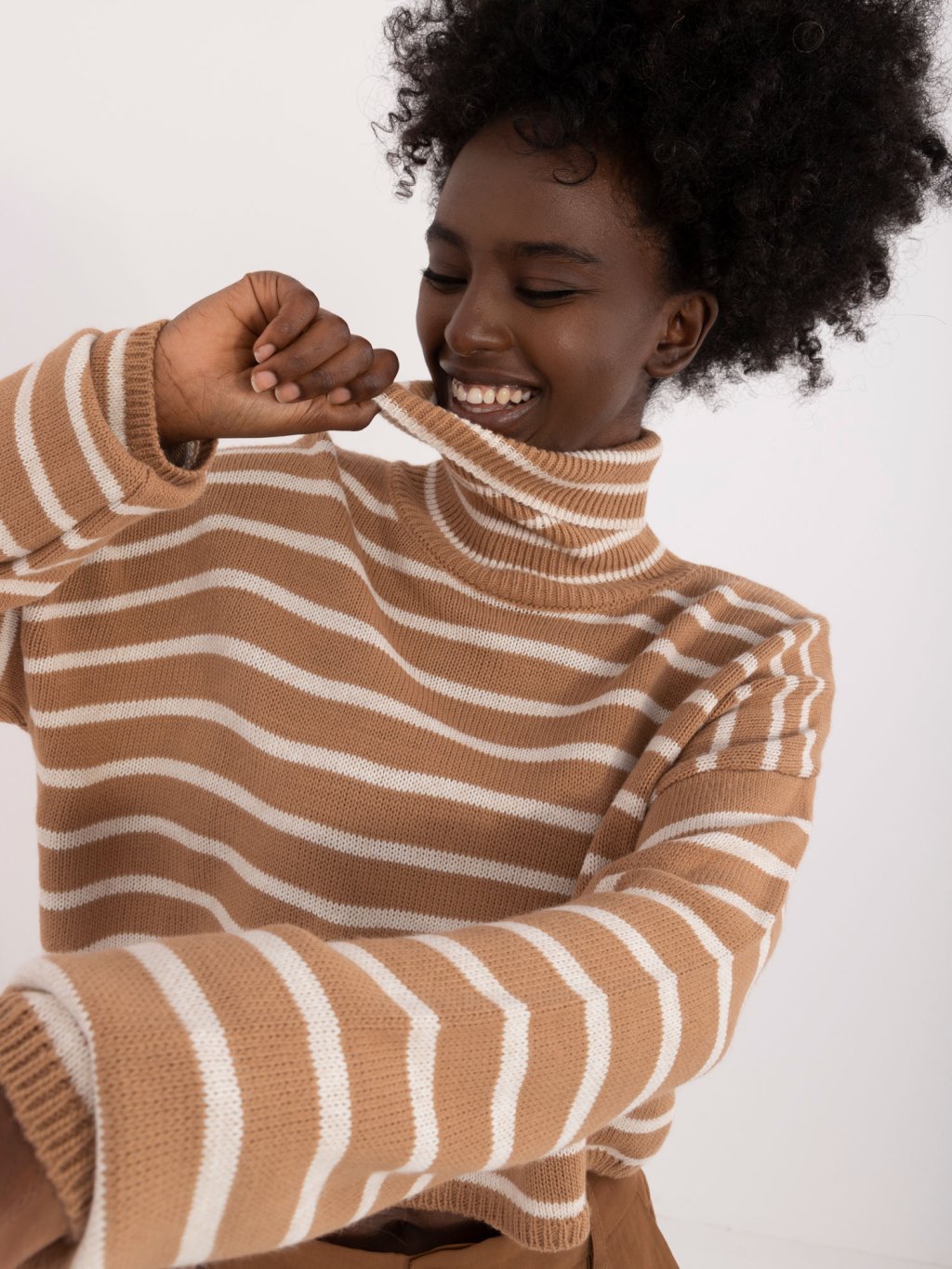 Barna-fehér csíkos crop pulóver garbóval