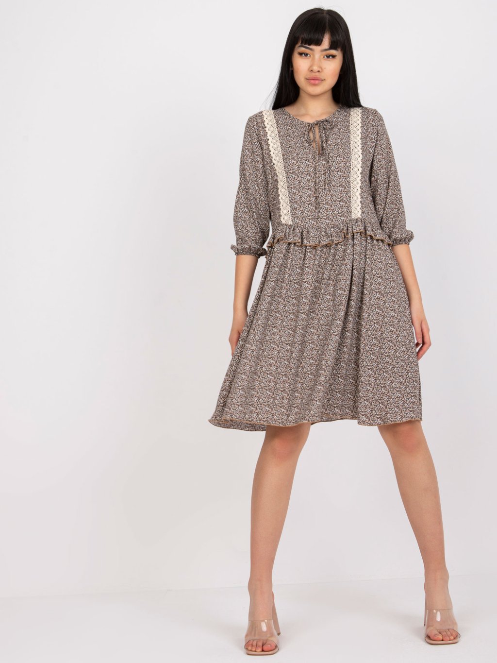 Barna mintás csipkés ruha