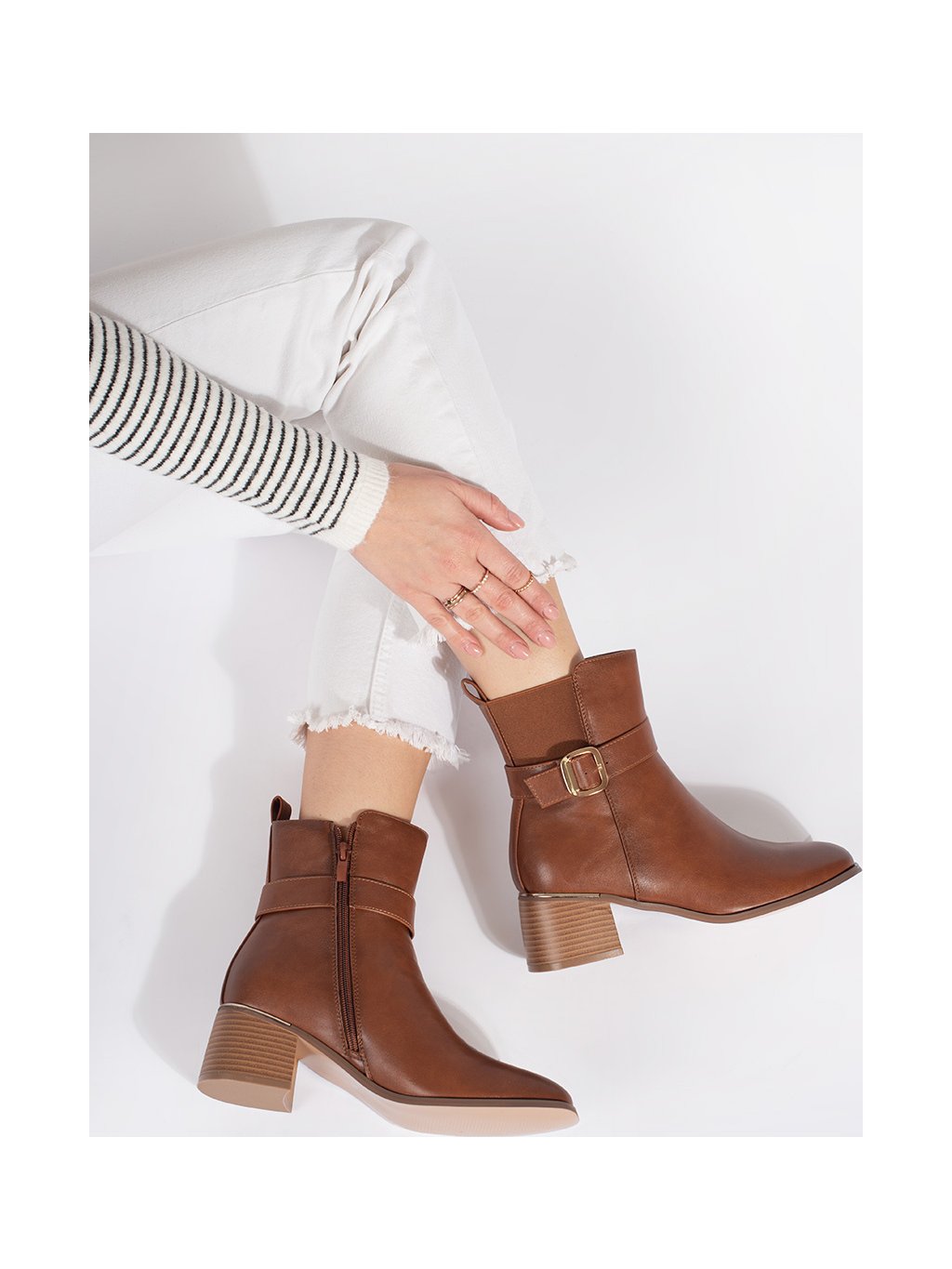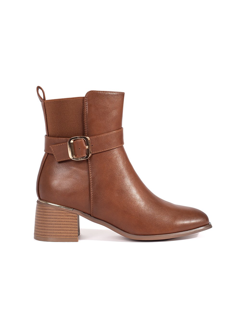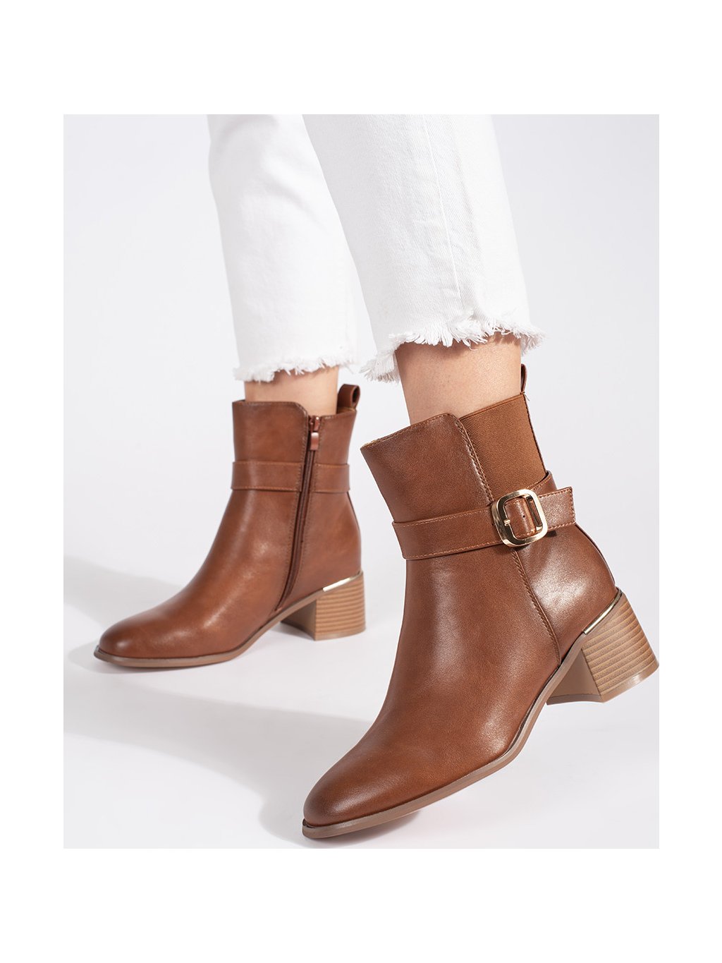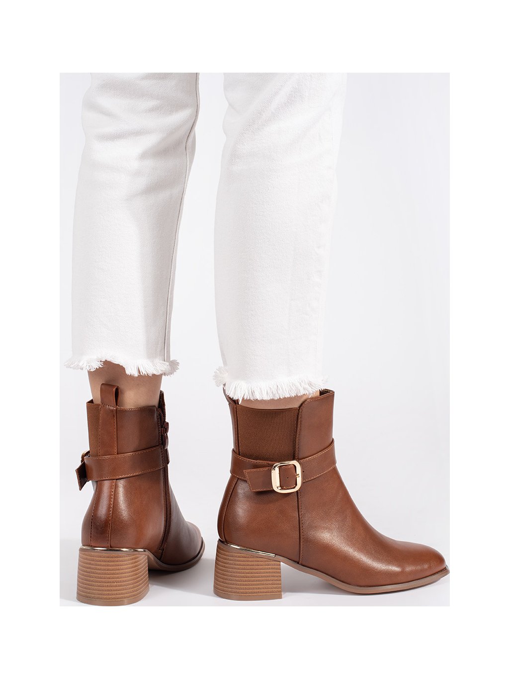 Barna női blokksarkú bokacsizma csattal, sarok 5,5 cm