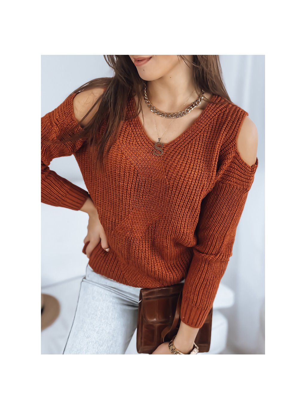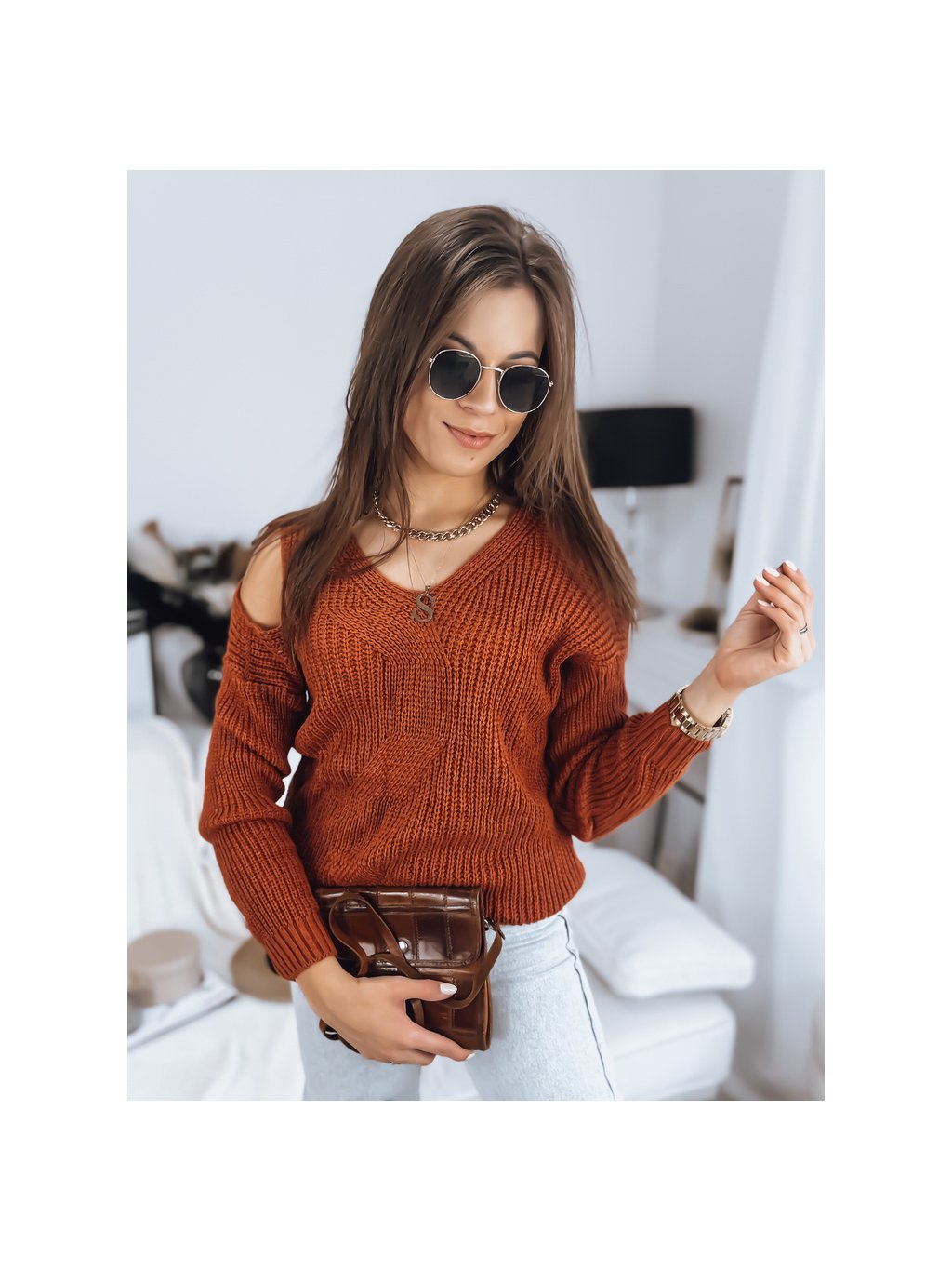 Barna pulóver pulóver vállrész csíkokkal TURI