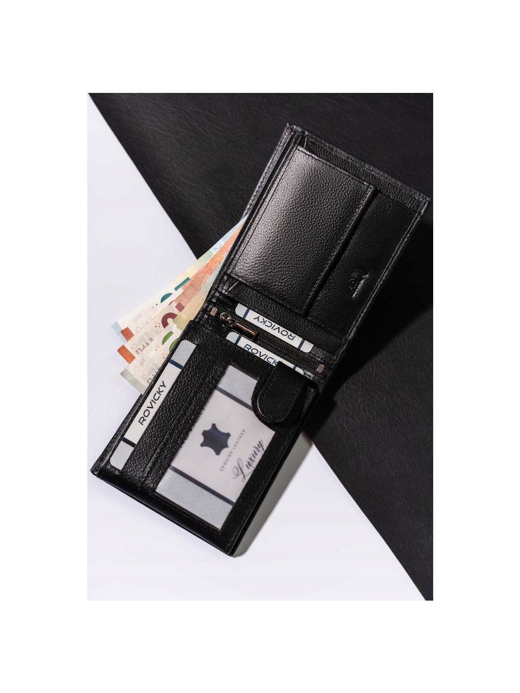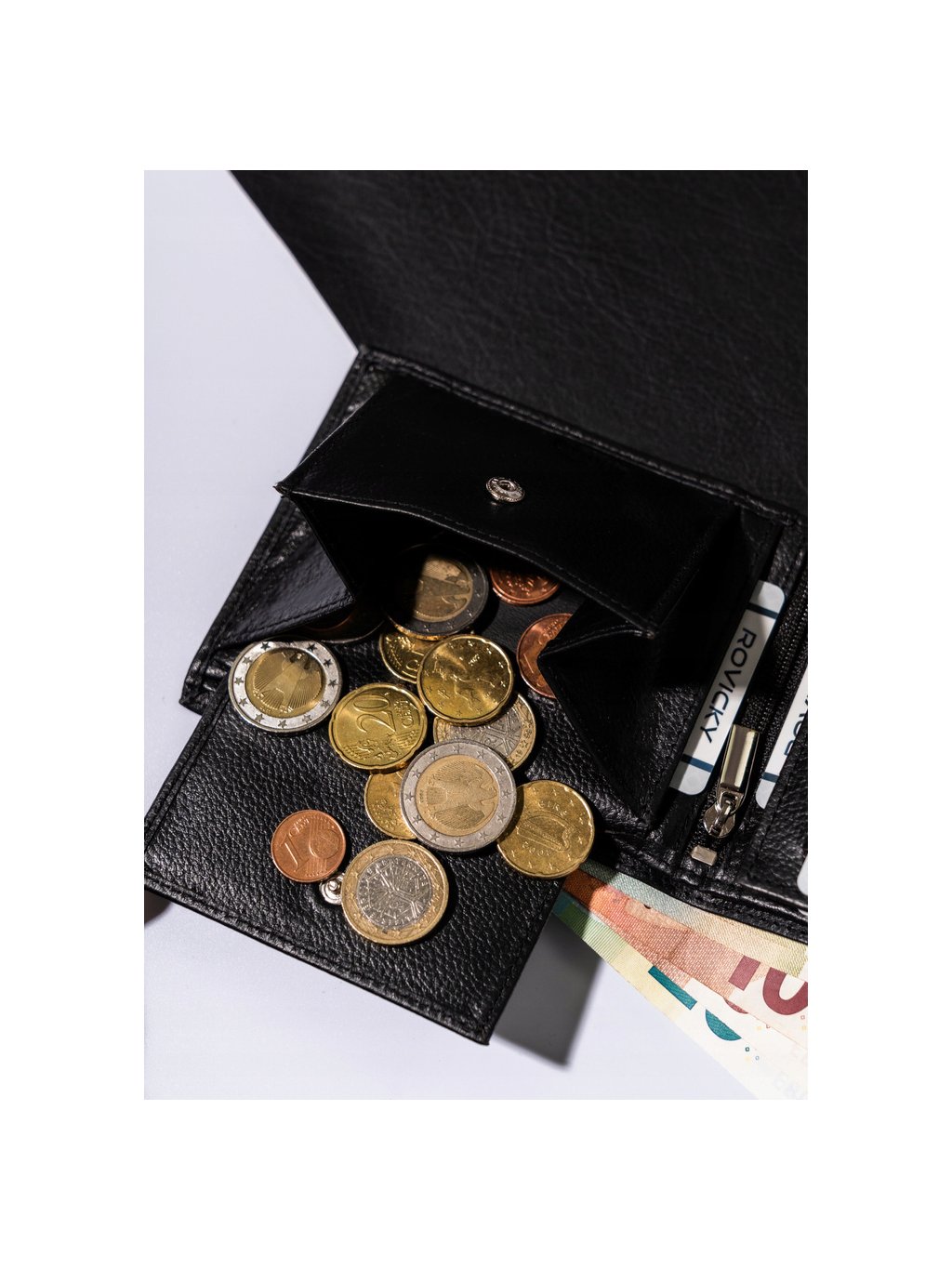 - 1 rekeszes, a pénztárca középső részén, cipzárral záródik