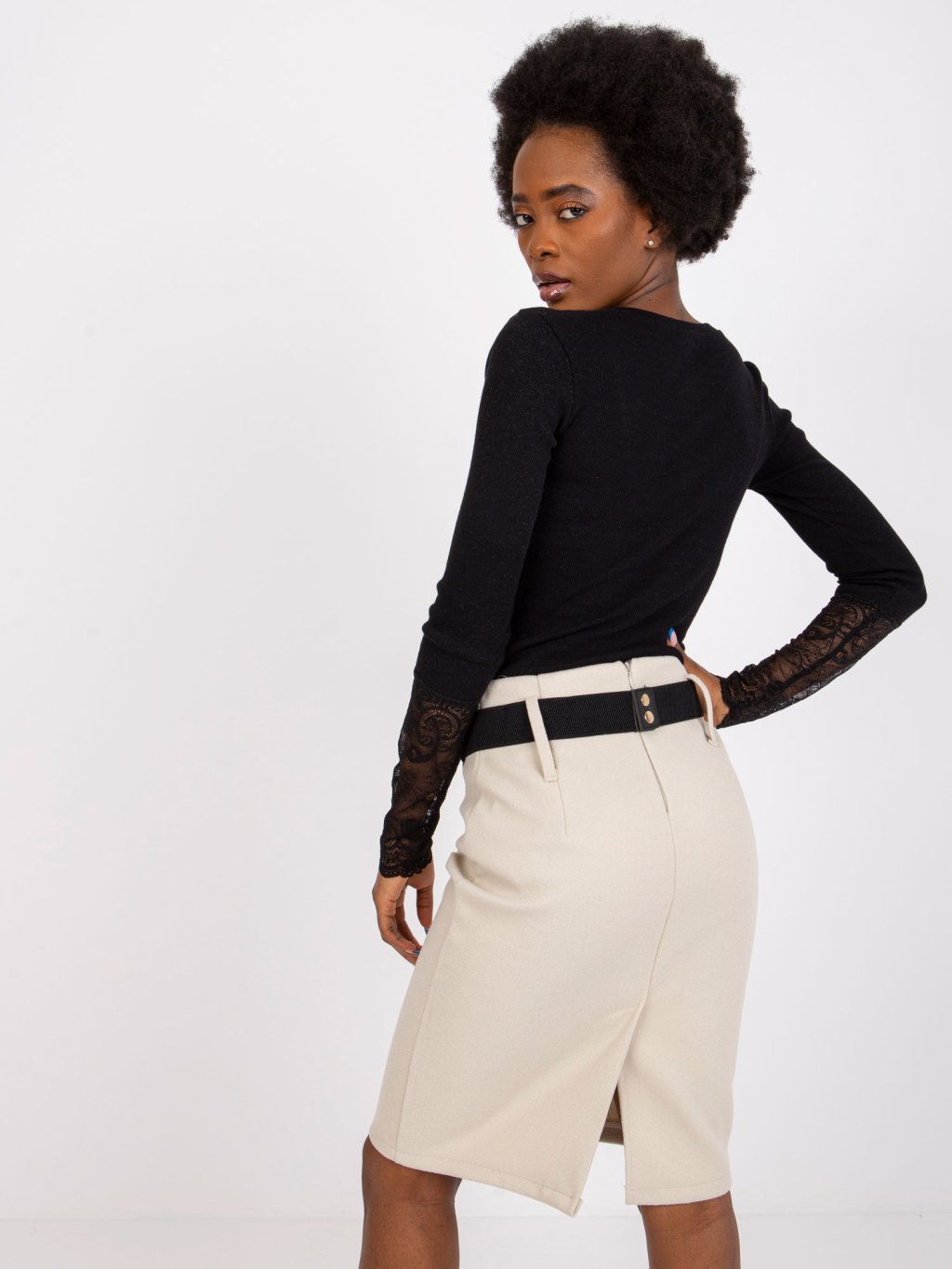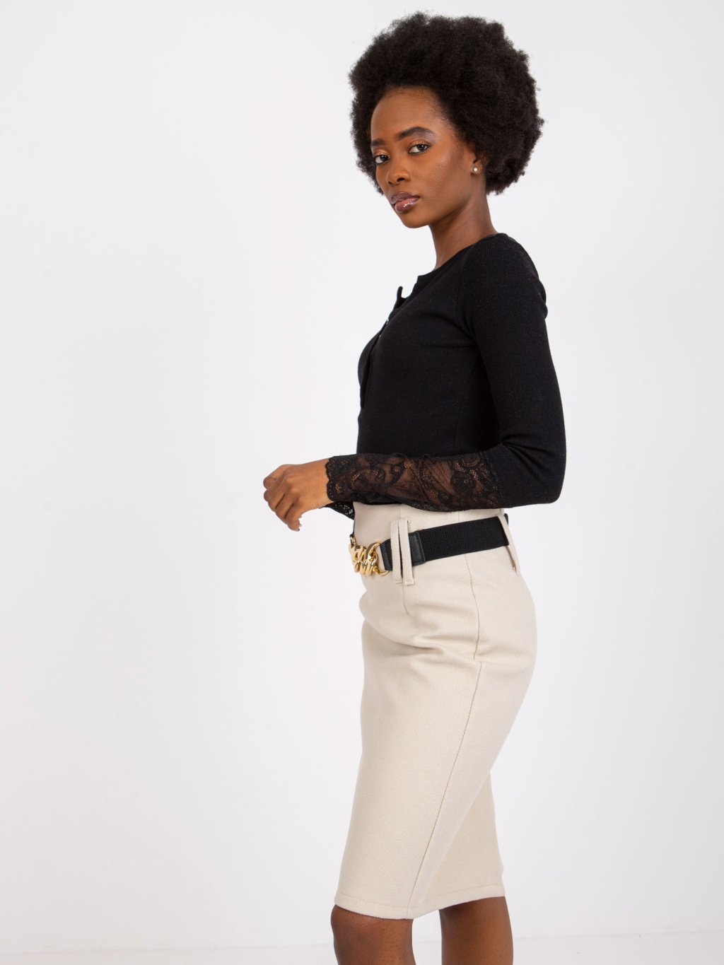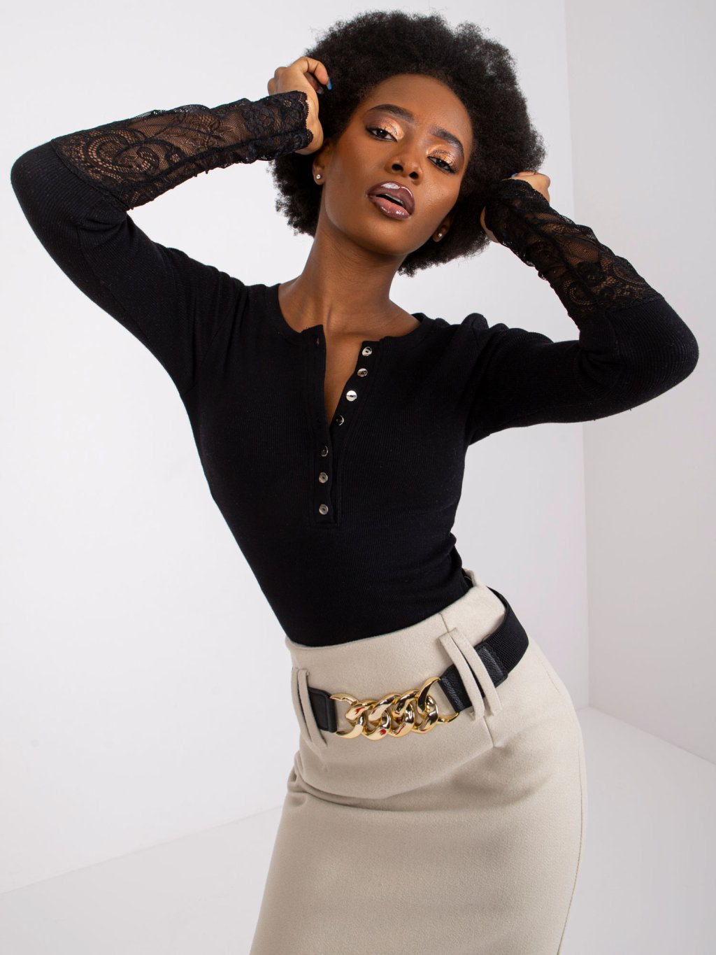 Beatrice Fekete póló csipkés ujjakkal
