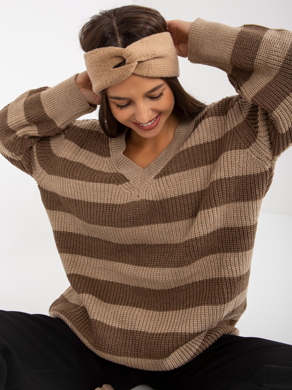Bézs-barna csíkos pulóver