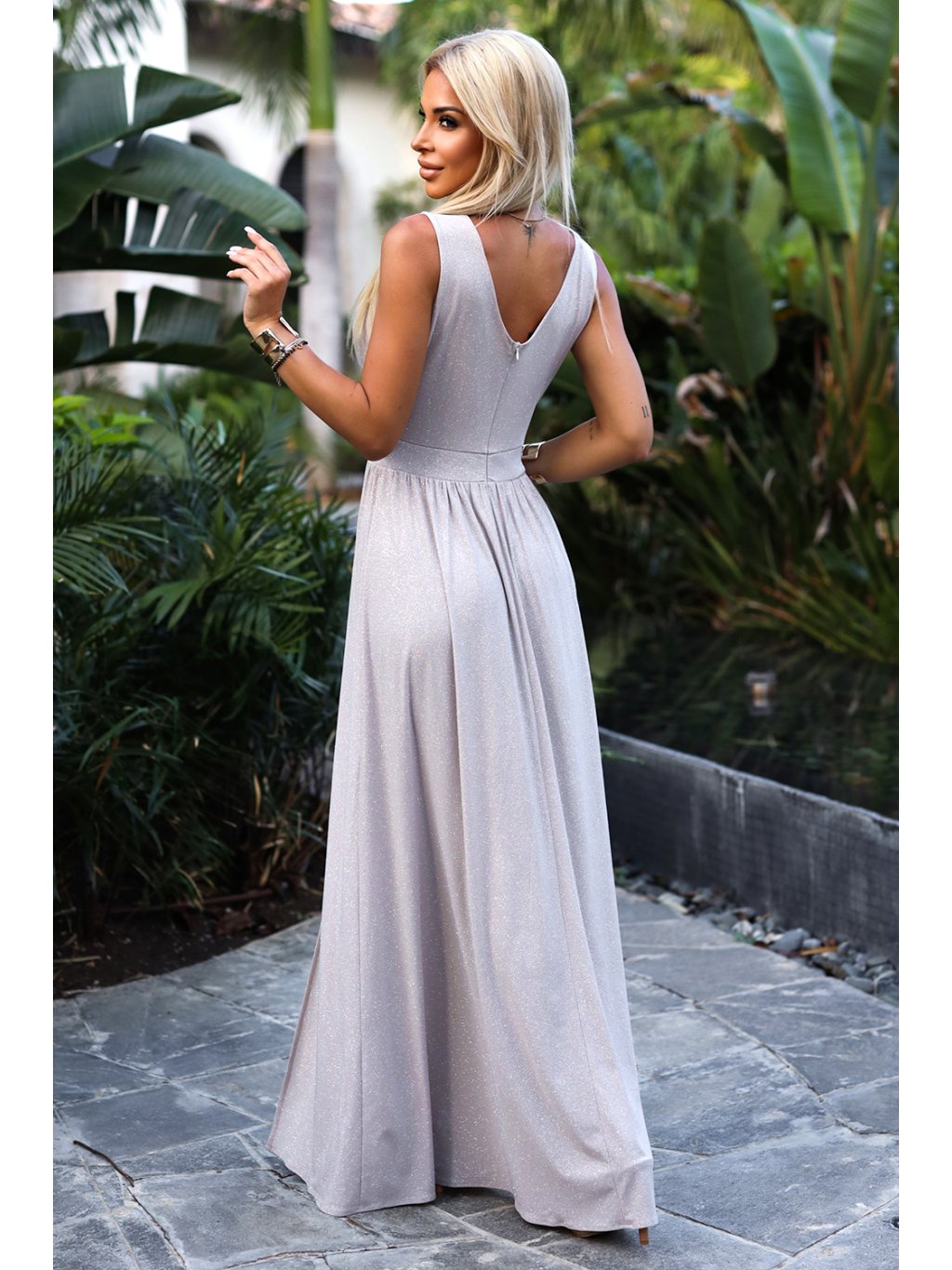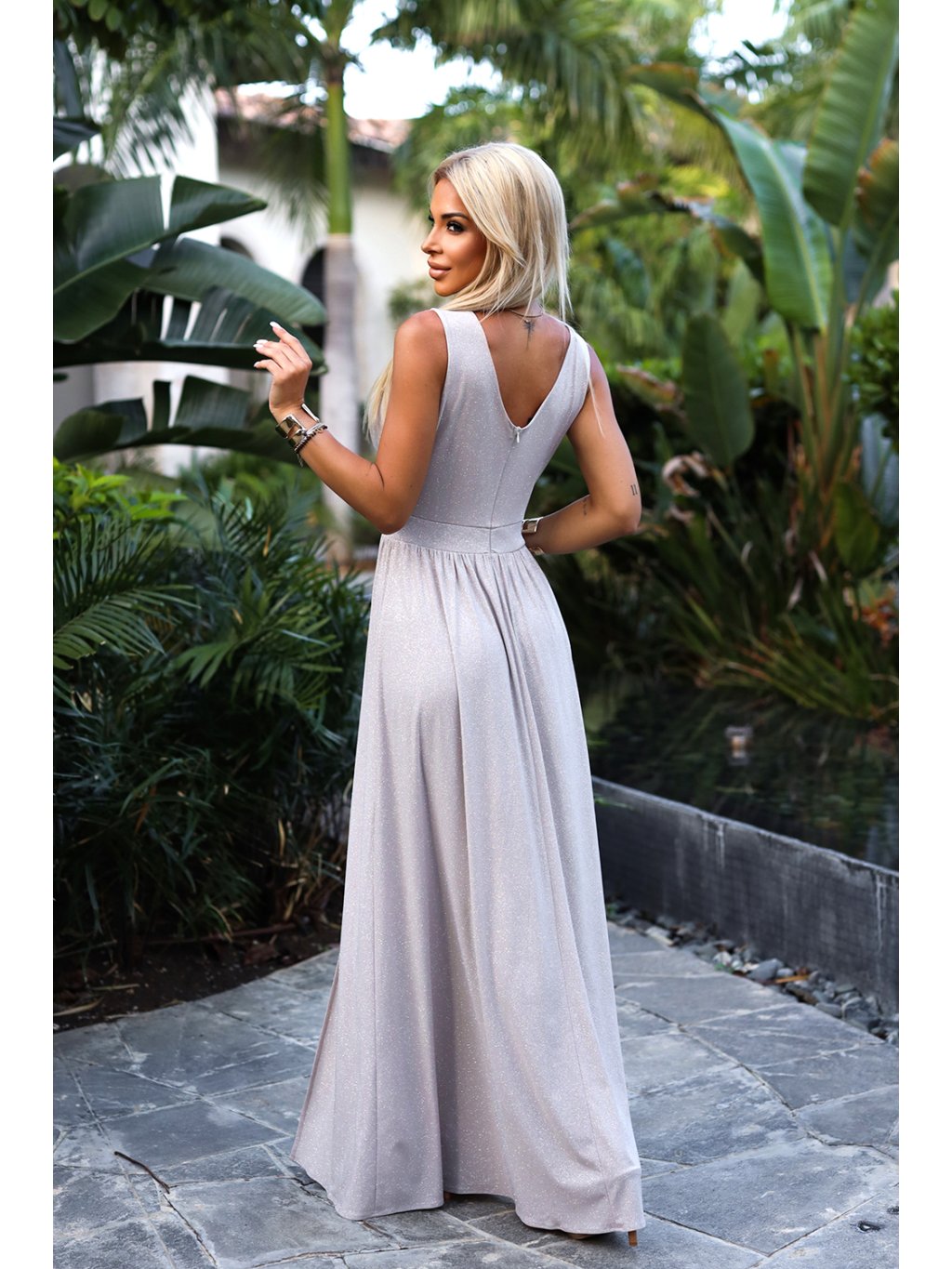 Bézs hosszú ruha csillogó és hasított LOUISE