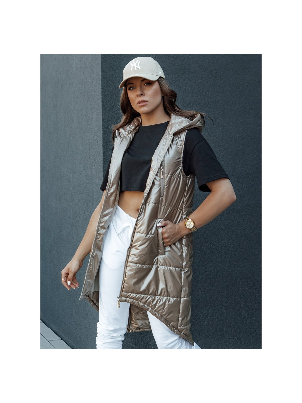 Bézs fényes, hosszú steppelt mellény aszimmetrikus szabással MERIS