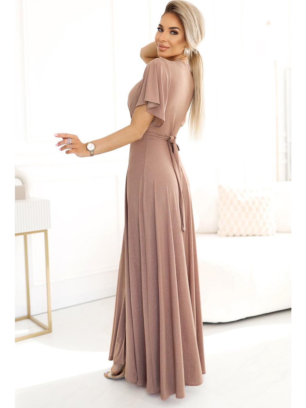 Bézs fényes hosszú ruha nyakkivágással JENNIFER