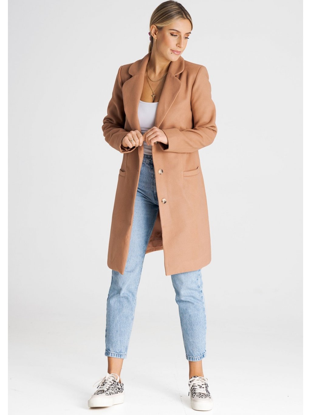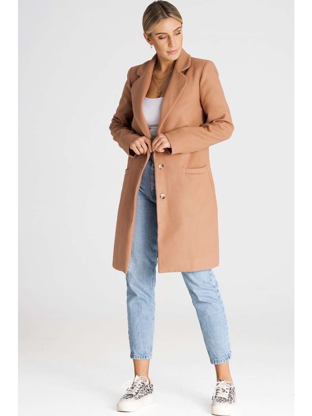 Bézs gombos kabát