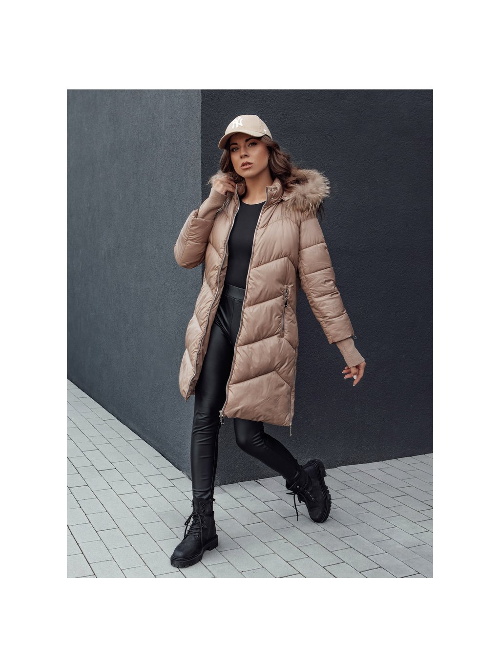 Bézs hosszabb steppelt kabát LAGOON