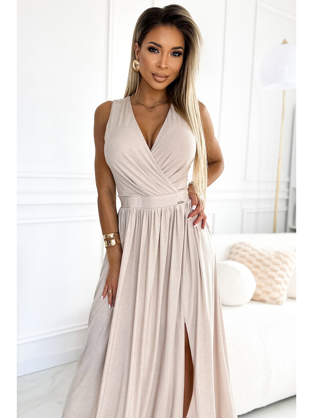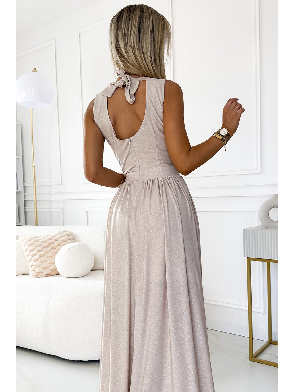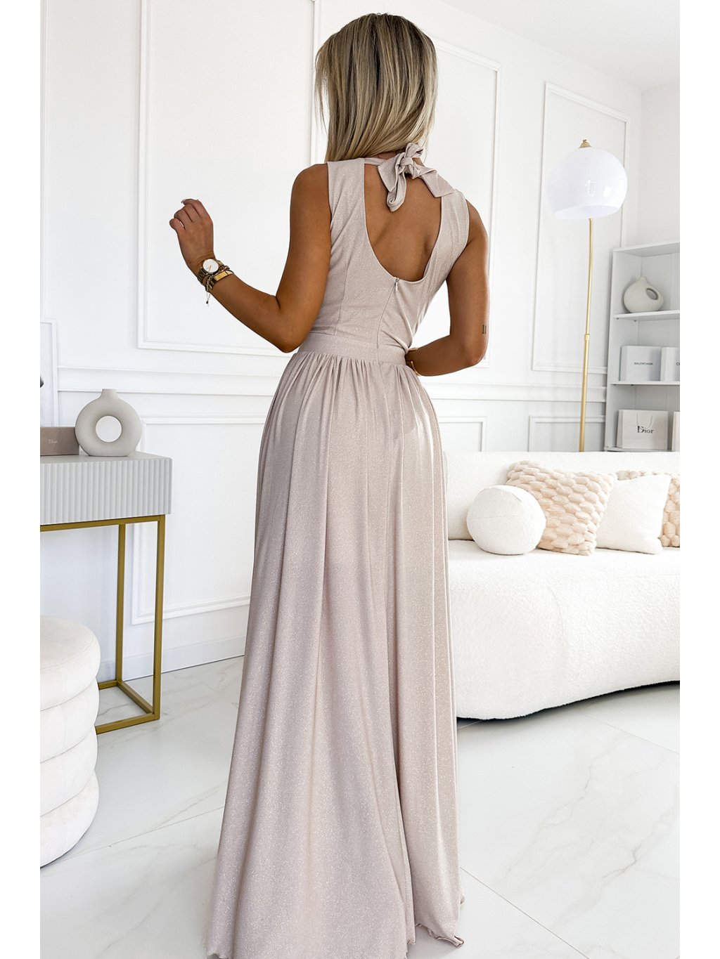 Hosszú bézs party ruha S nyakkivágássalszabásem GERDA