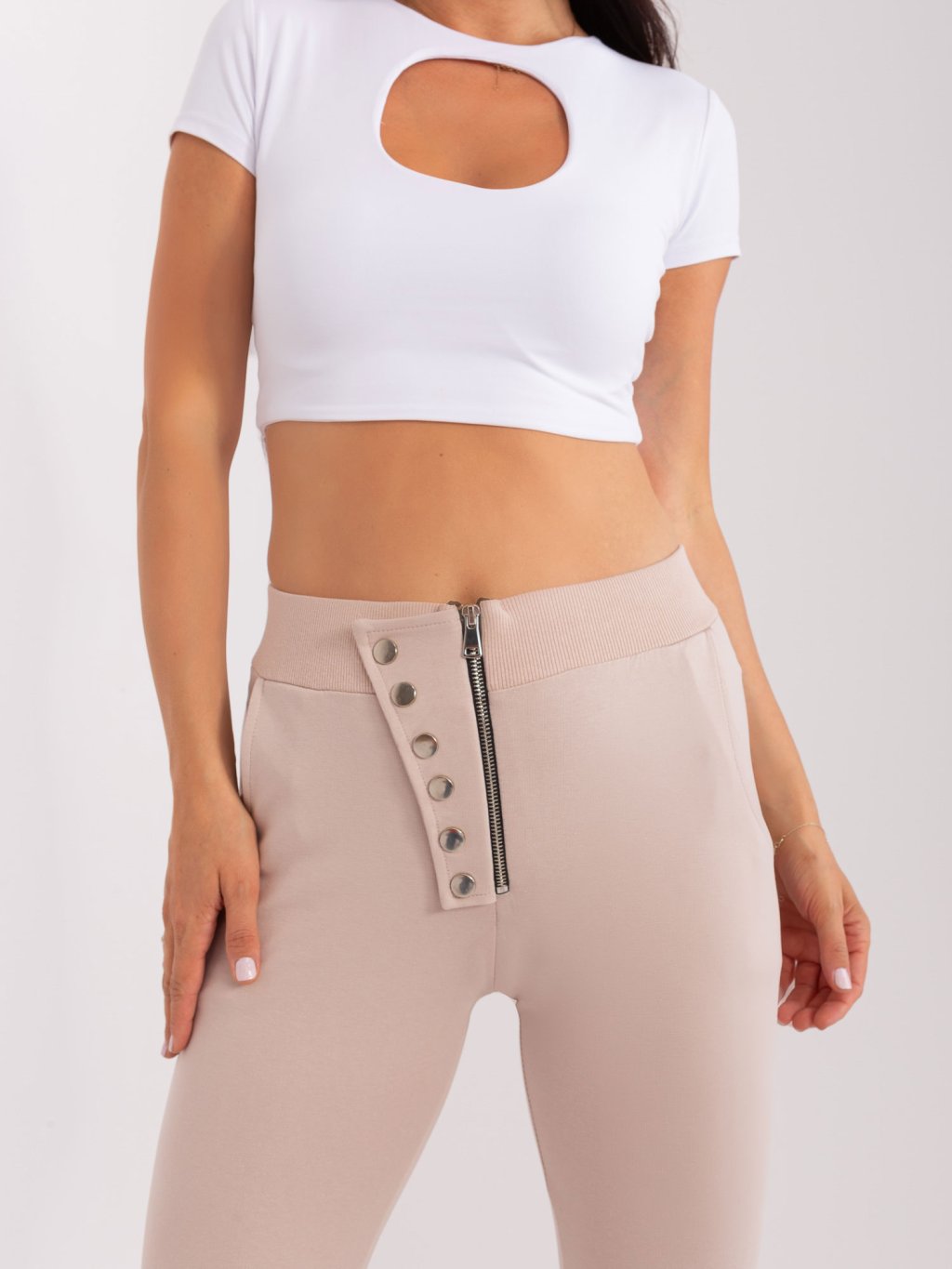 Bézs melegítőnadrág cipzárral