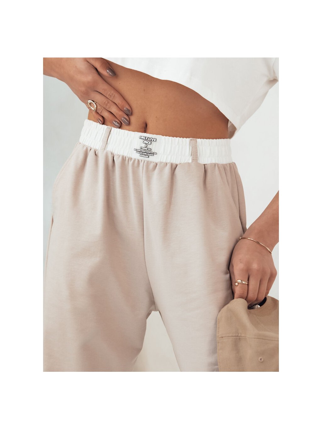 Bézs melegítőnadrág magas derékkal MINAM