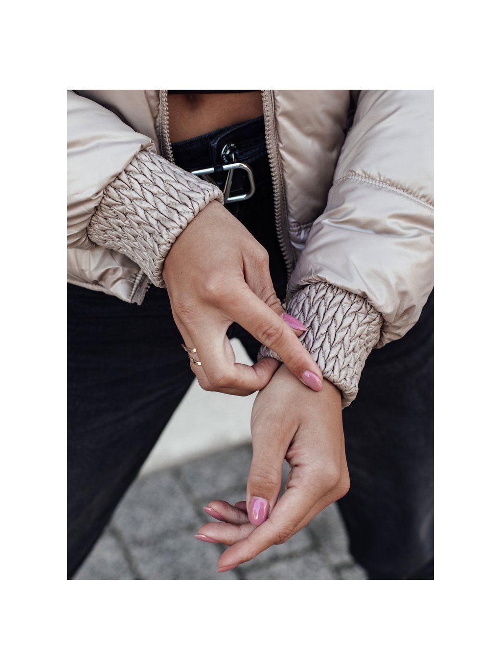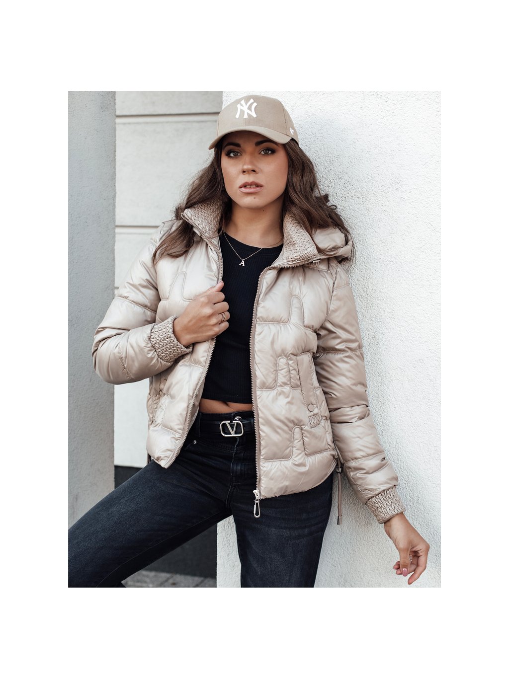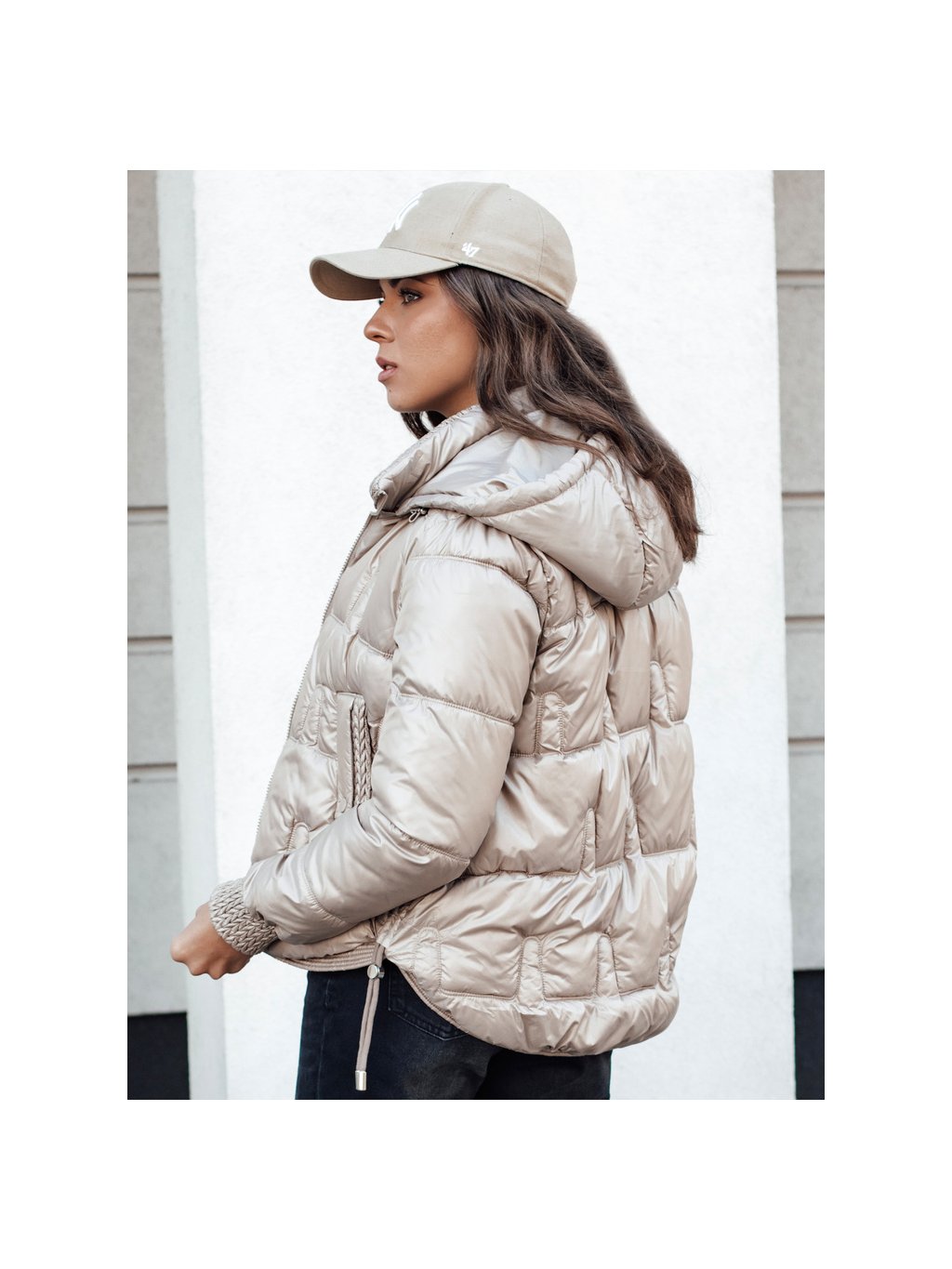 Bézs női rövid téli steppelt dzseki kapucnival FASHWARM