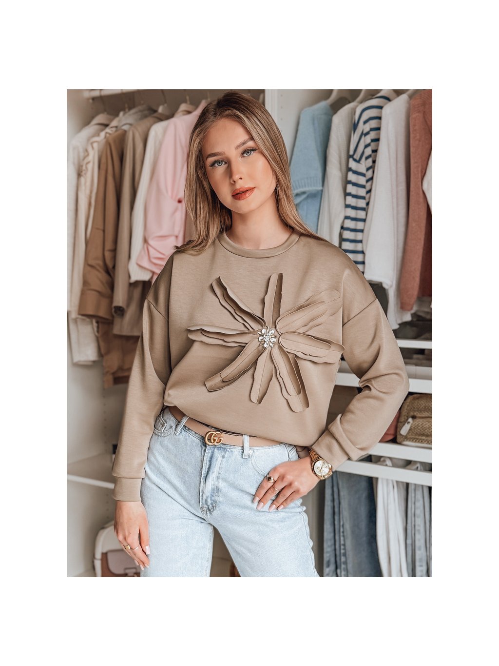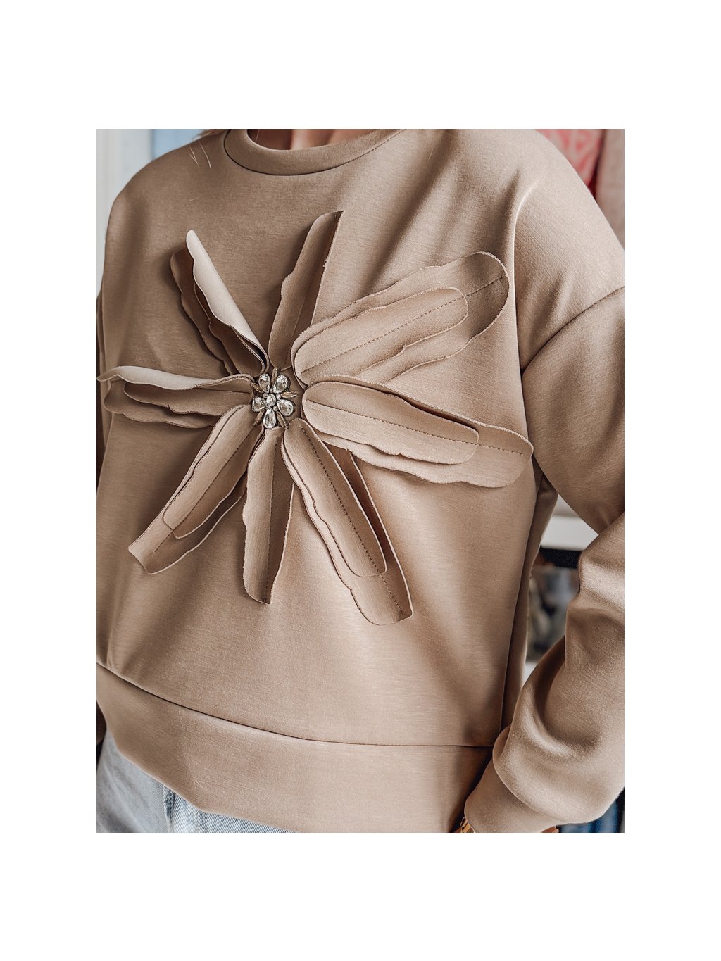 Bézs pulóver virágos motívummal és brossal PETITKA