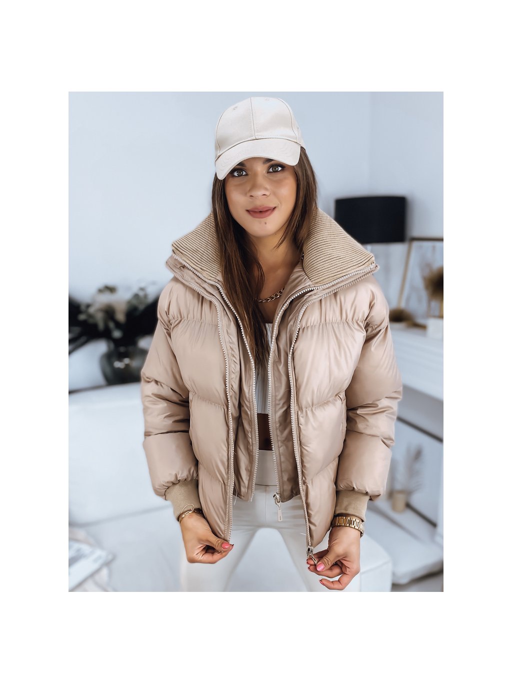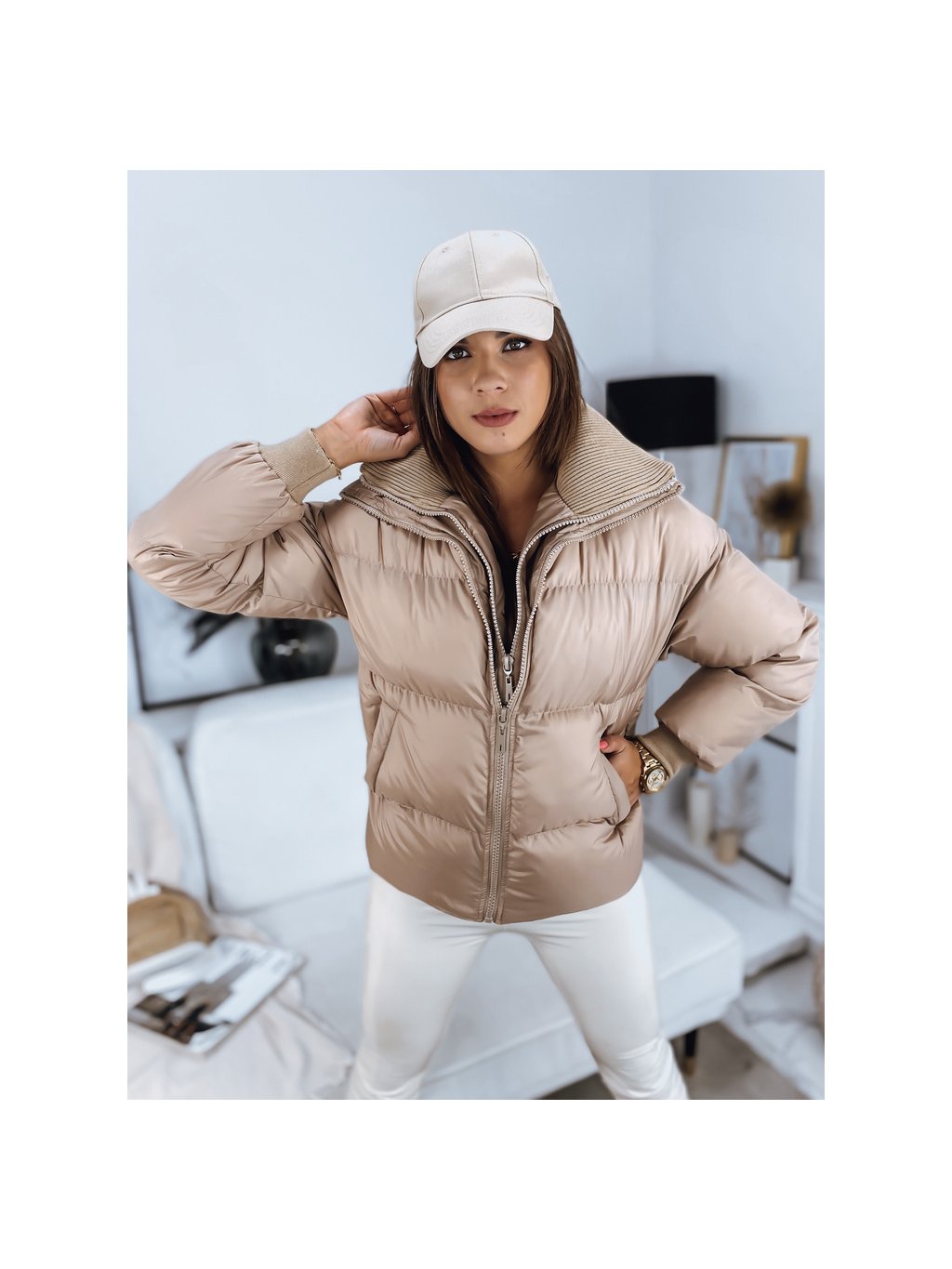 Bézs steppelt rövidebb kabát DABIS