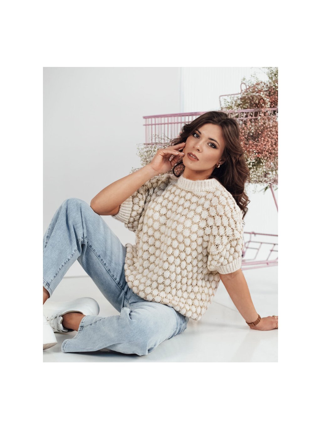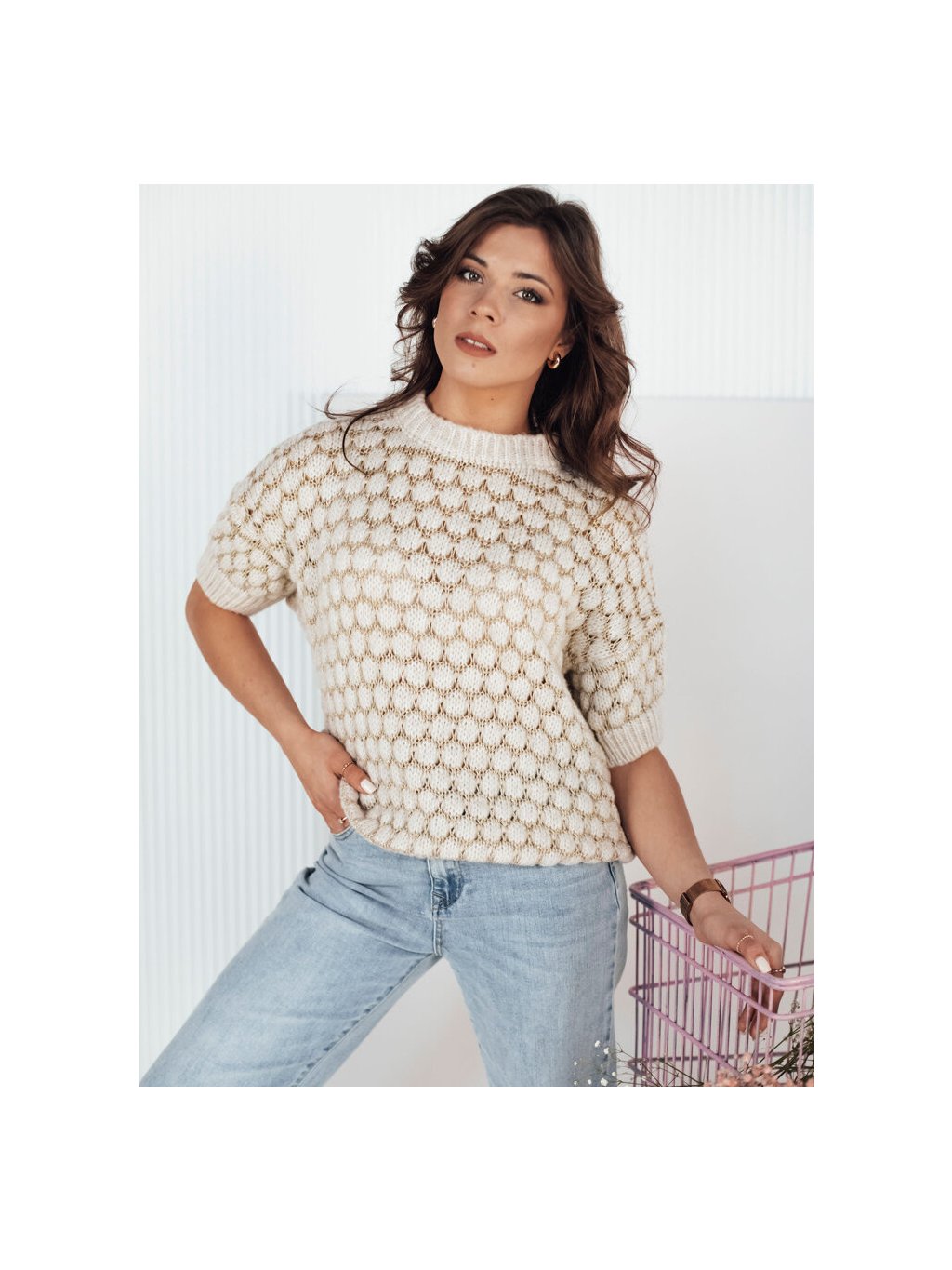 Bézs stílusos oversize pulóver PINGOL
