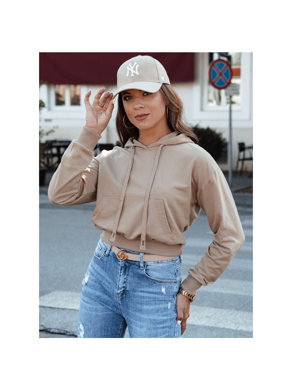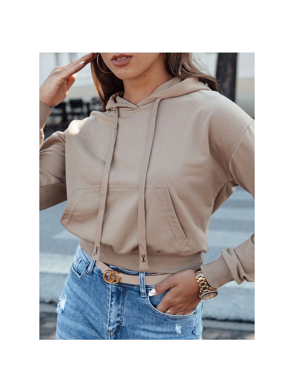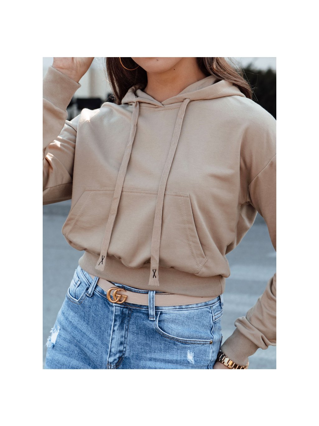 Bézs színű crop pulóver kapucnival TRENDHOOD