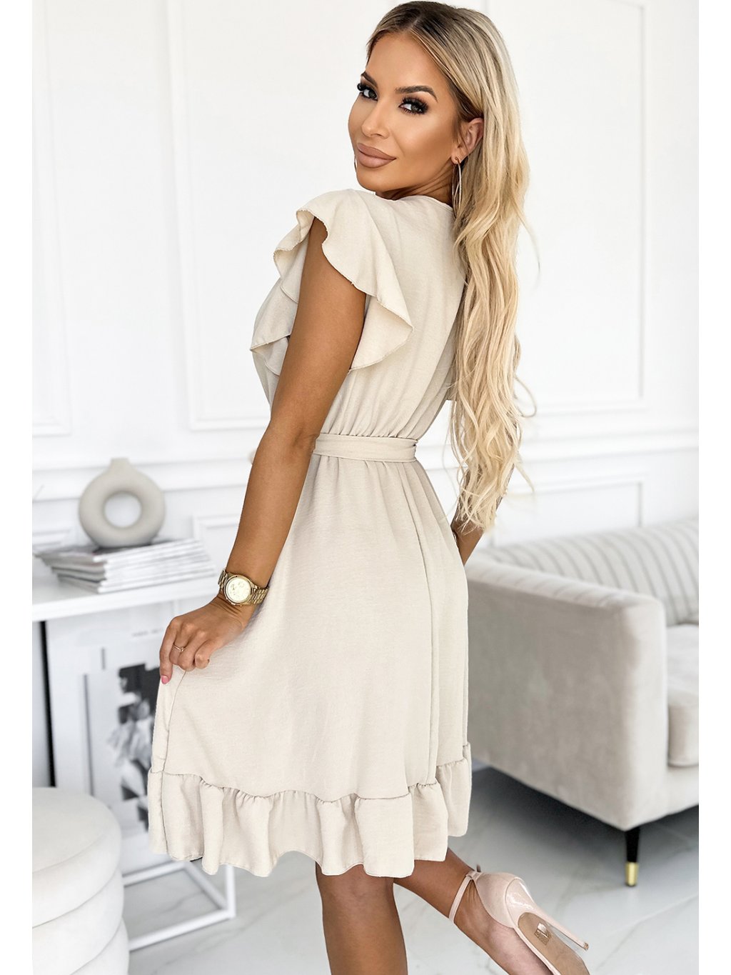 Bézs színű fodros ruha CORNELIA