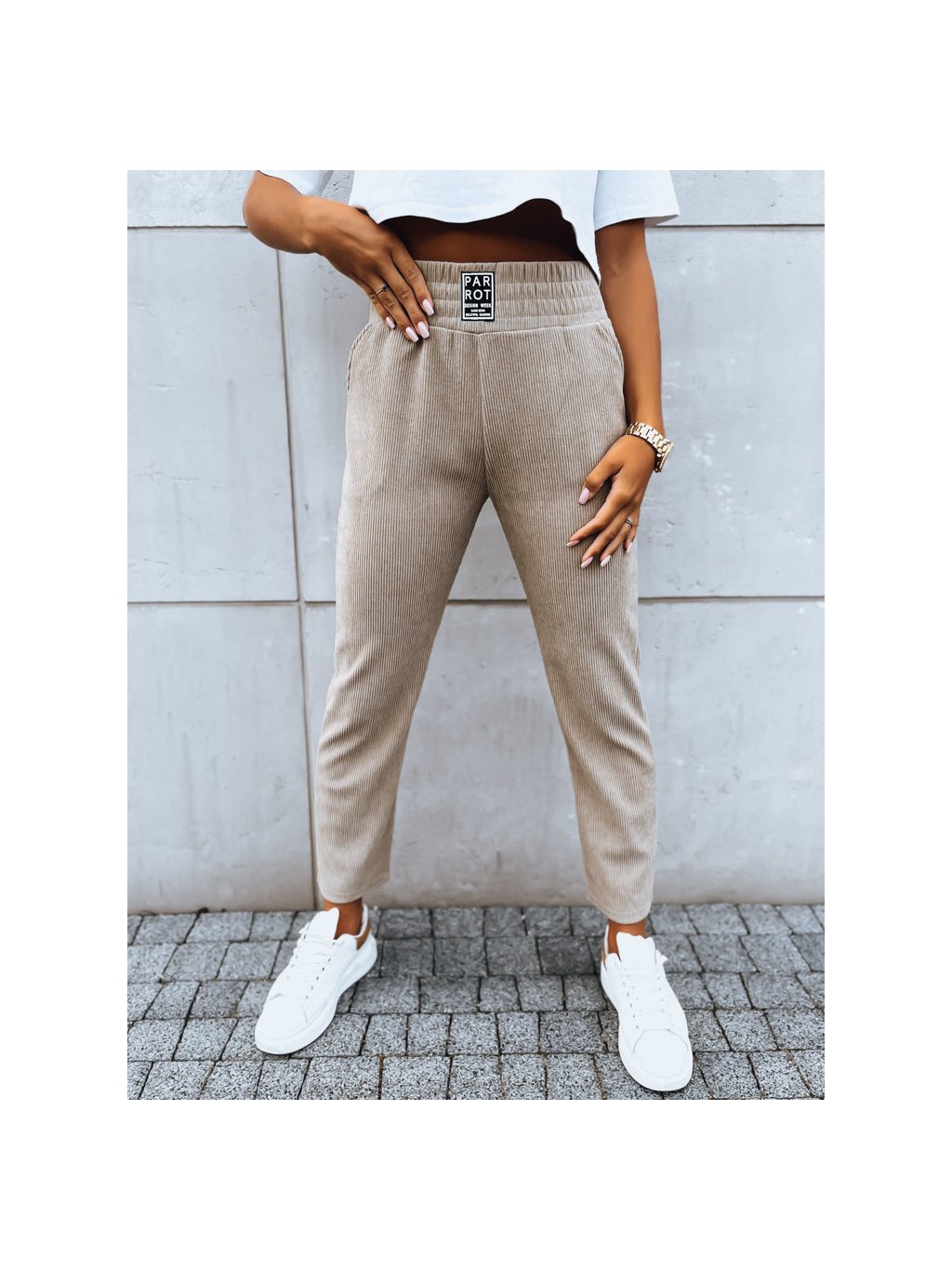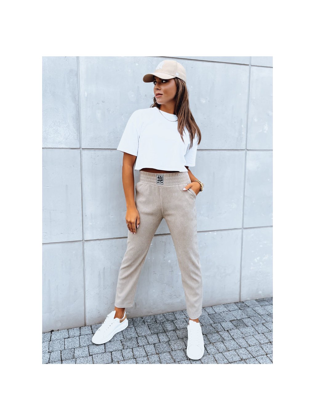 Bézs színű kordbársony melegítőnadrág MOONLIGHT