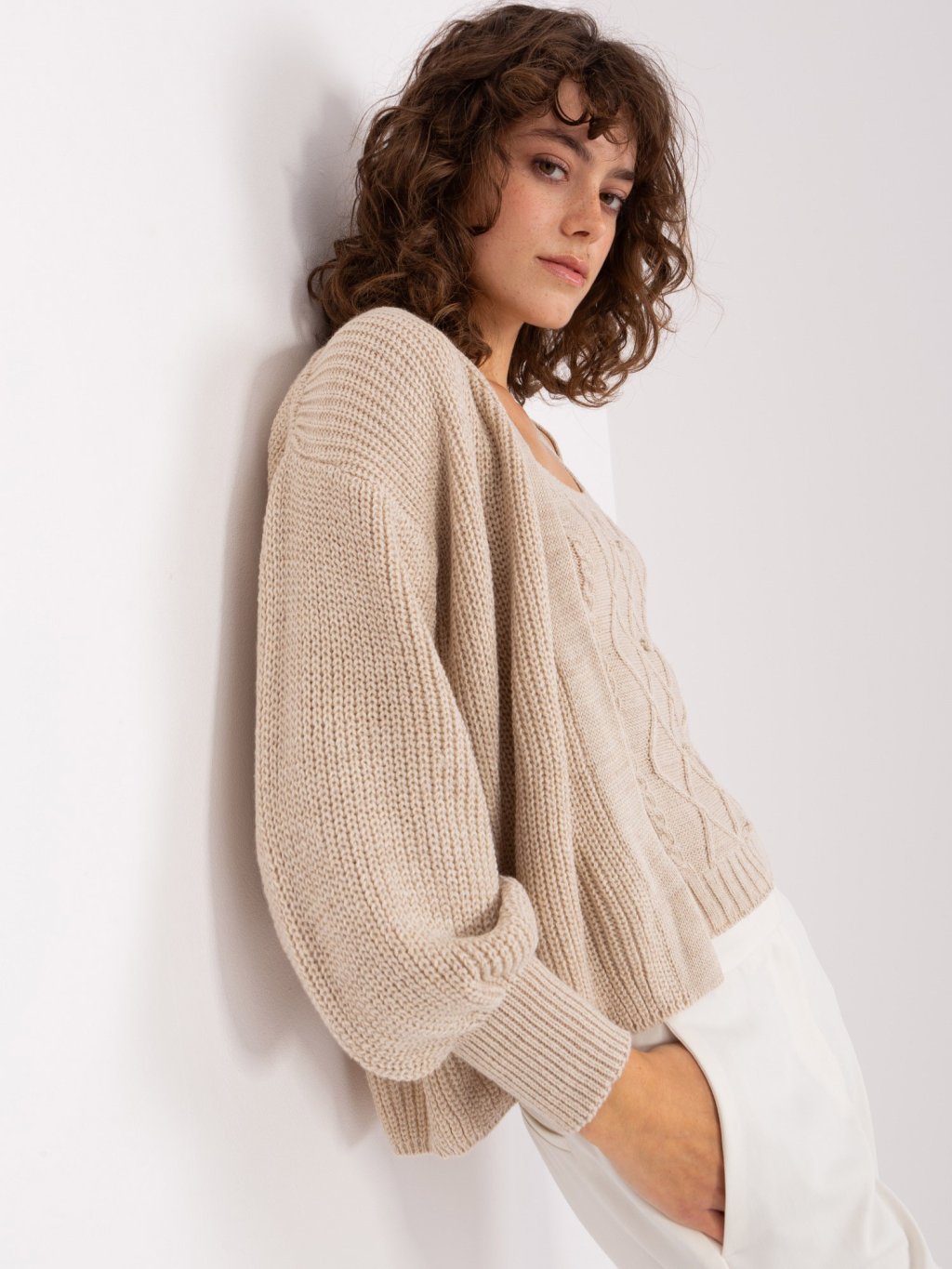 Bézs színű kötött felső és pulóver szett