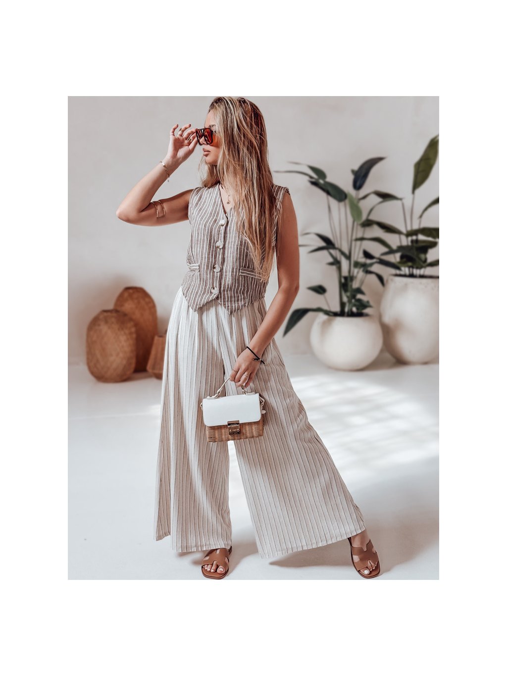 Bézs színű női csíkos viszkóz nadrág SUMMERLINE