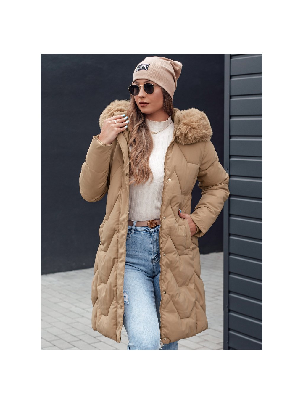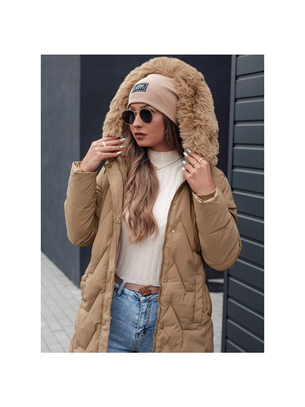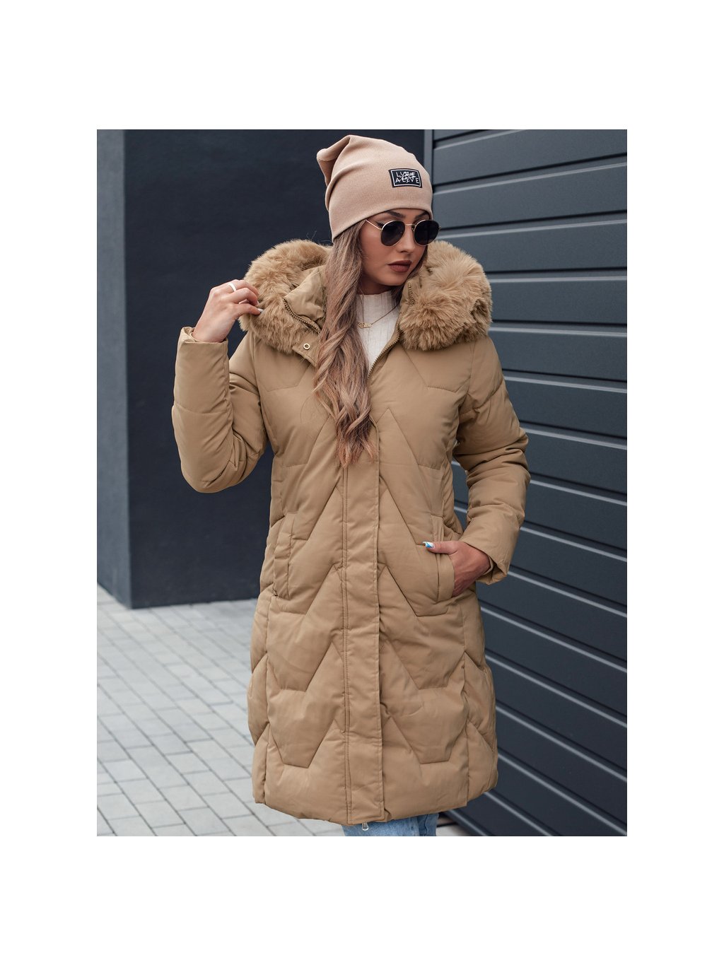 Bézs színű női téli steppelt kabát VEONI