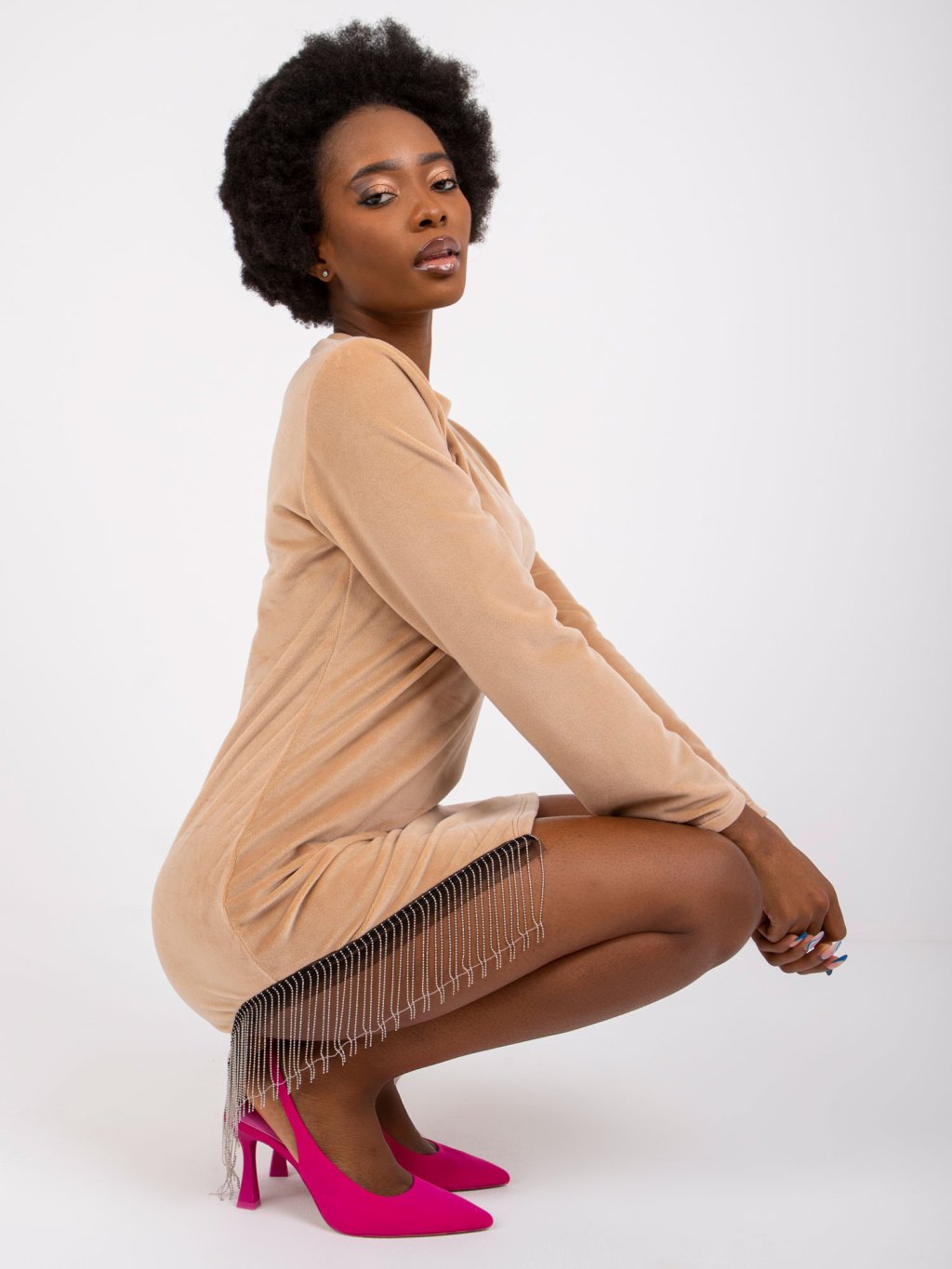 Bézs velúr ruha Melissa csillogó díszítéssel