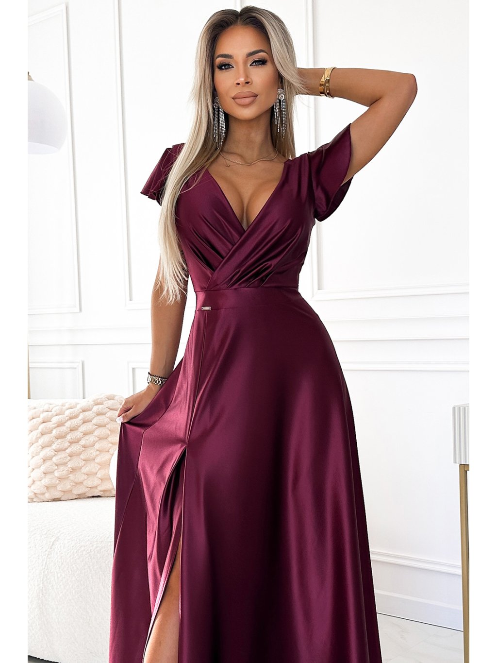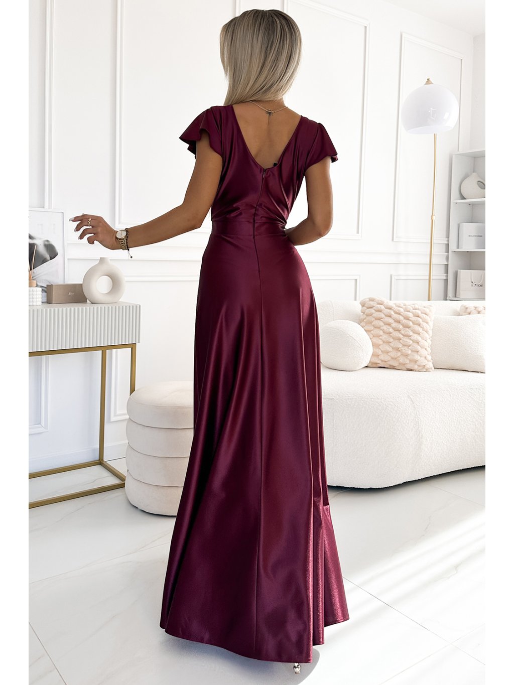 Bordó fényes maxi ruha nyakkivágással CRYSTAL