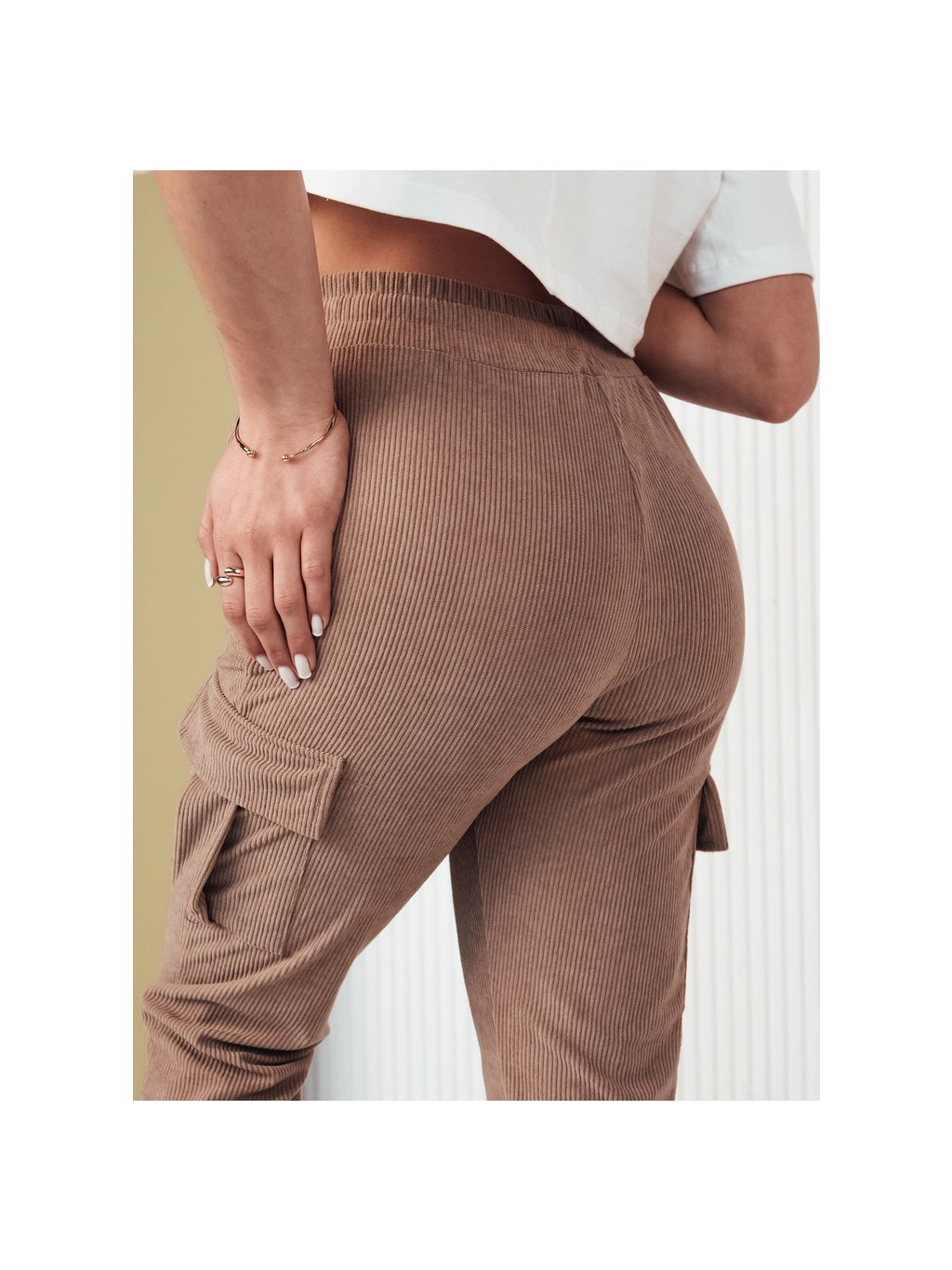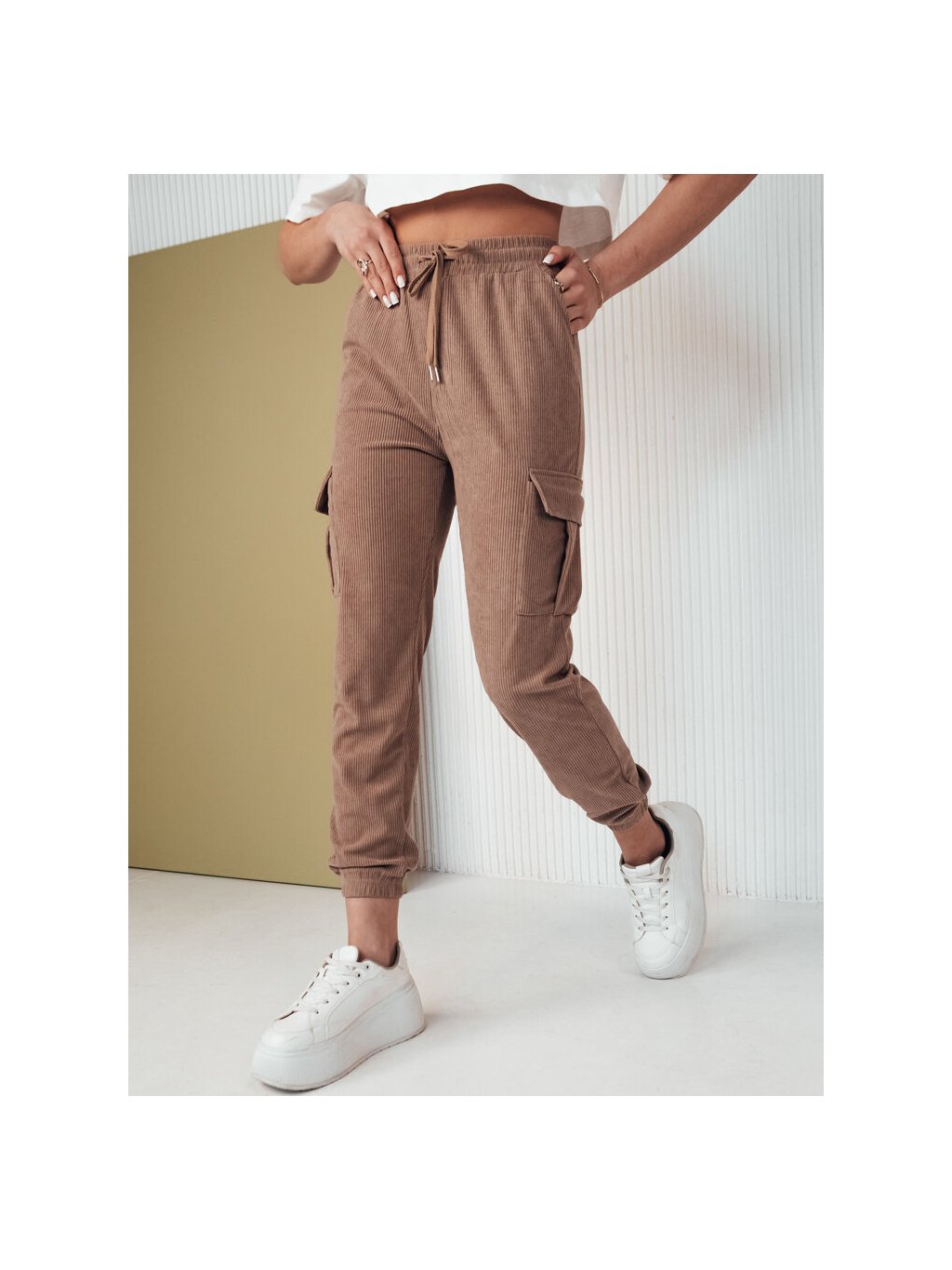 Camel bordázott melegítőnadrág zsebekkel FLAYON