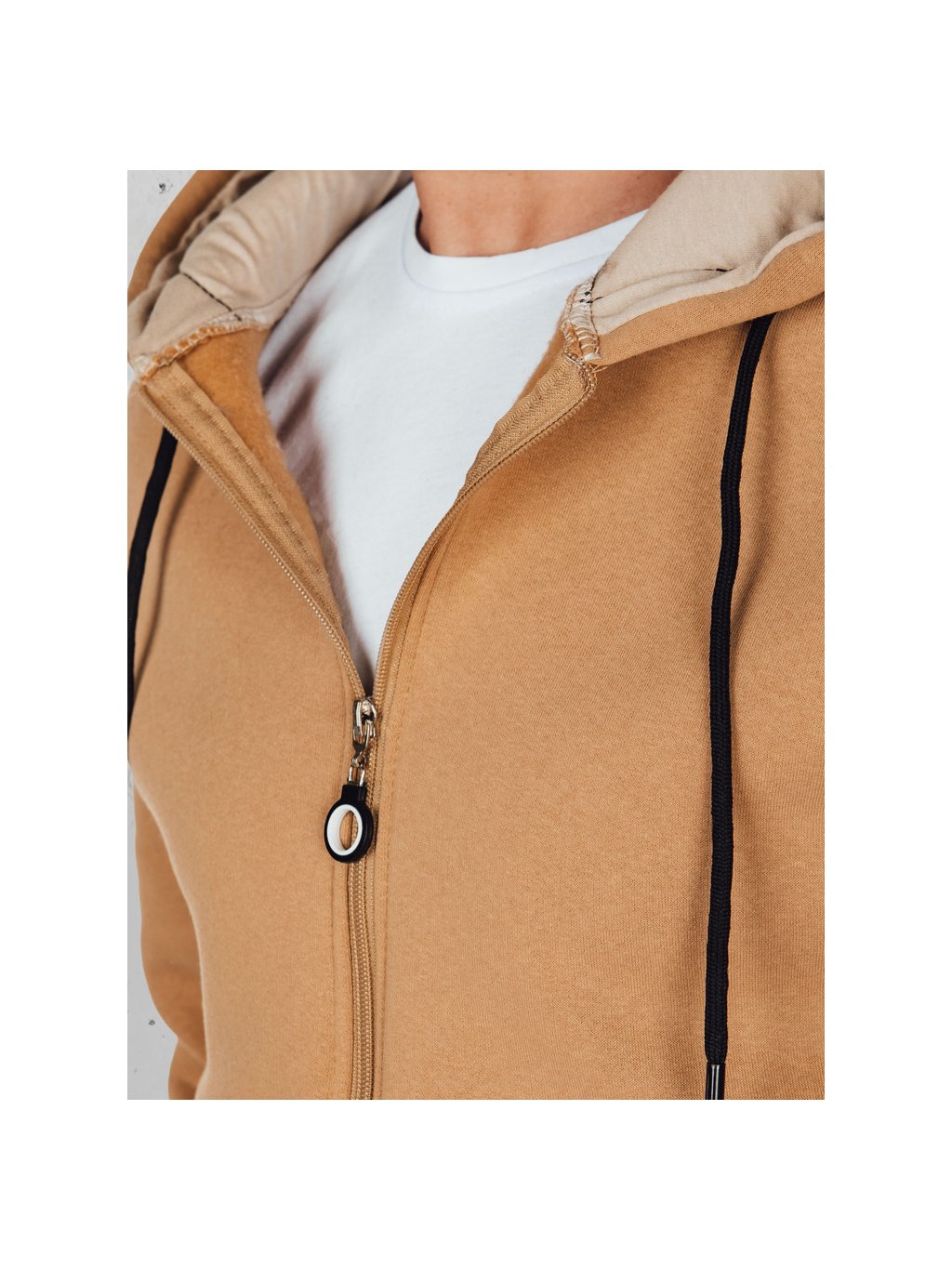 Camel színű férfi cipzáras pulóver