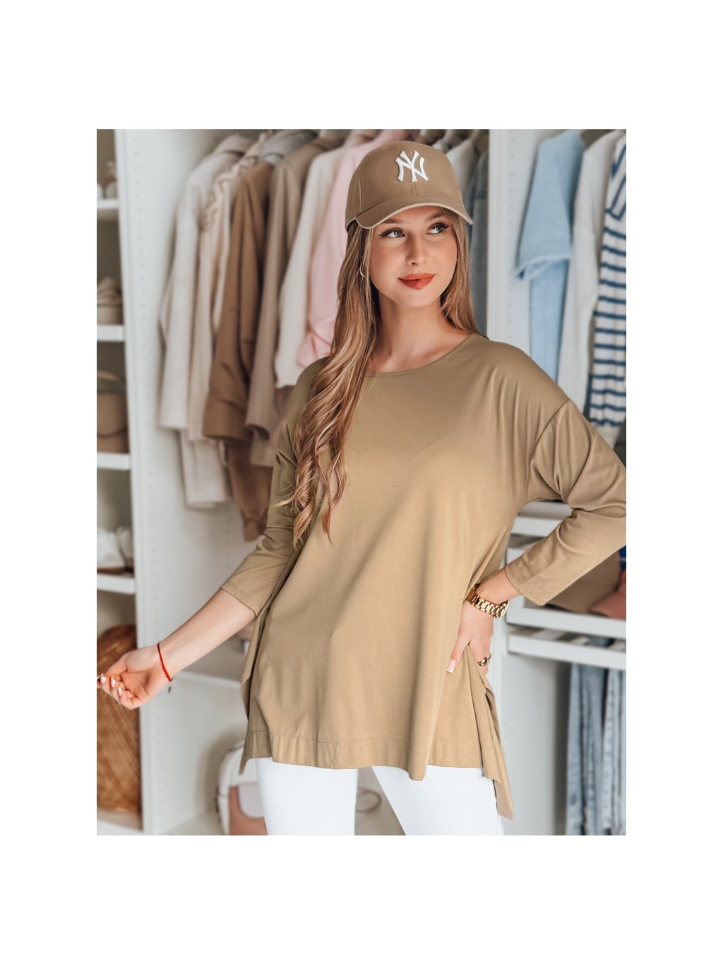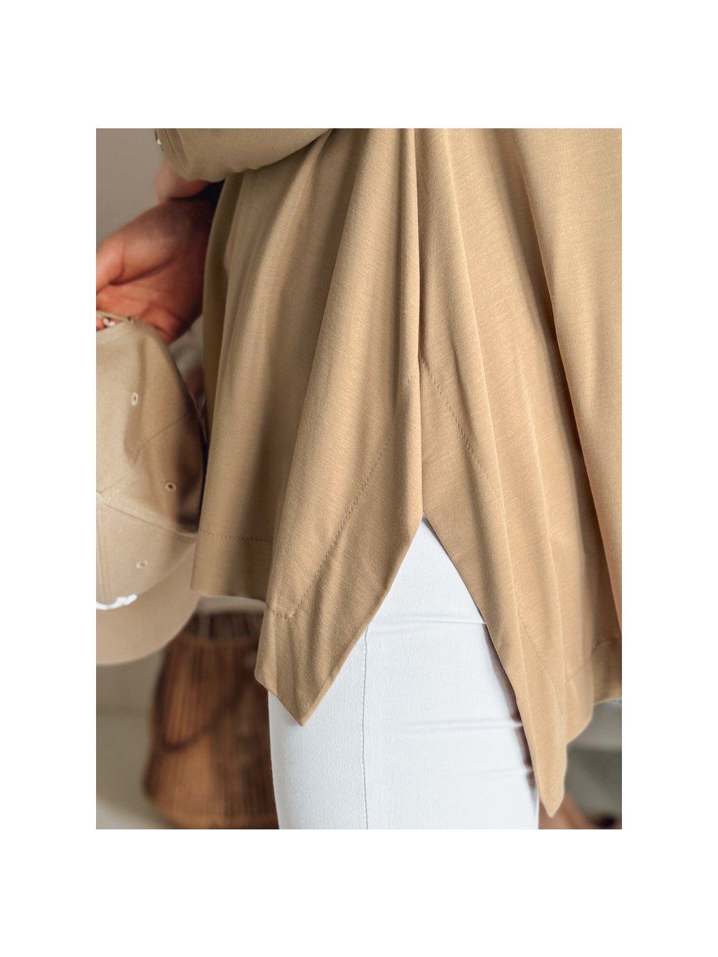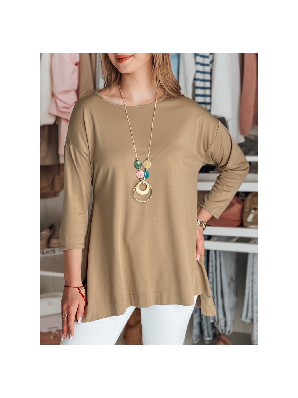 Camel színű női aszimmetrikus oversize blúz medállal COMFILA