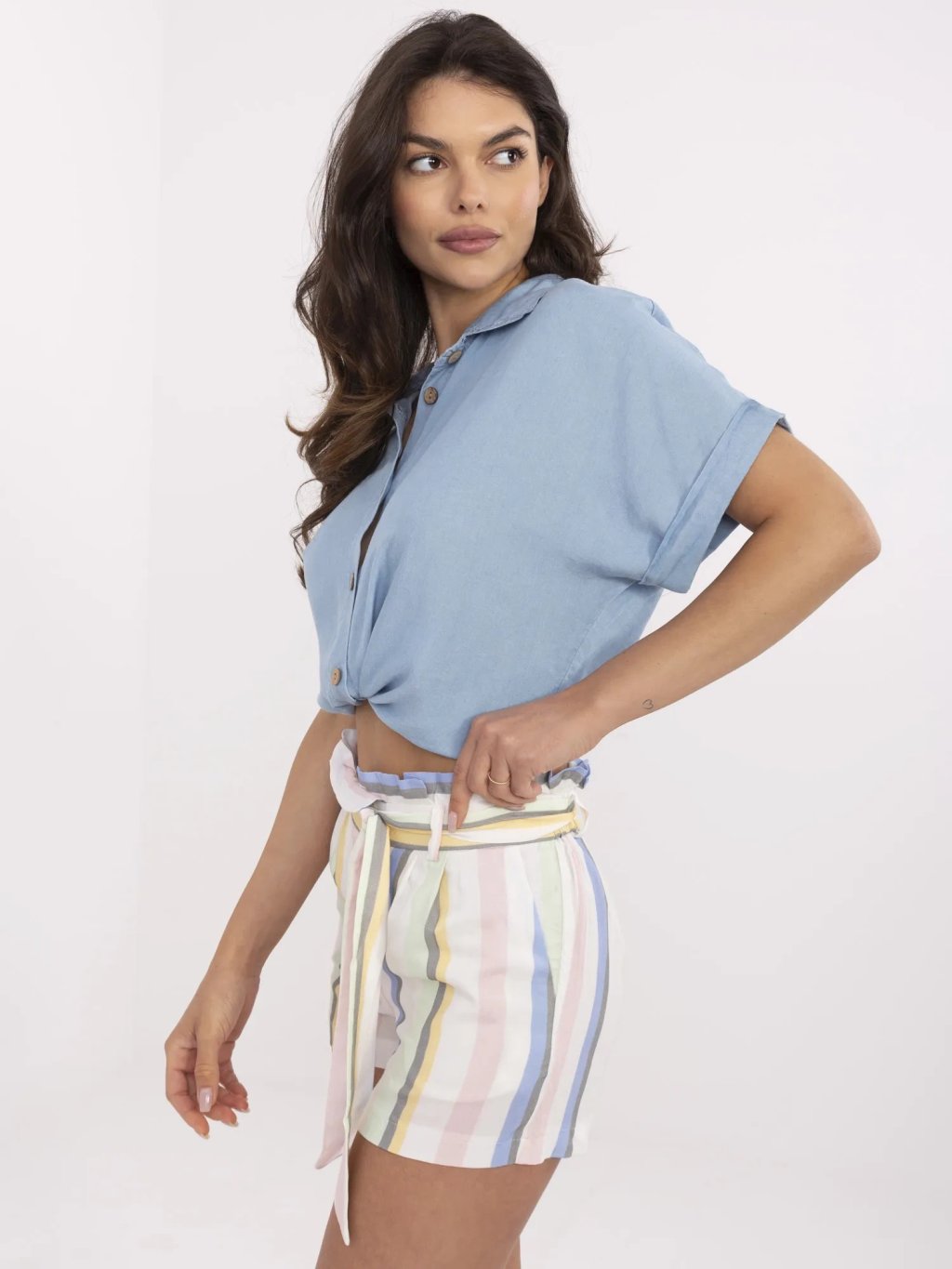 Csíkos színes rövidnadrág övvel