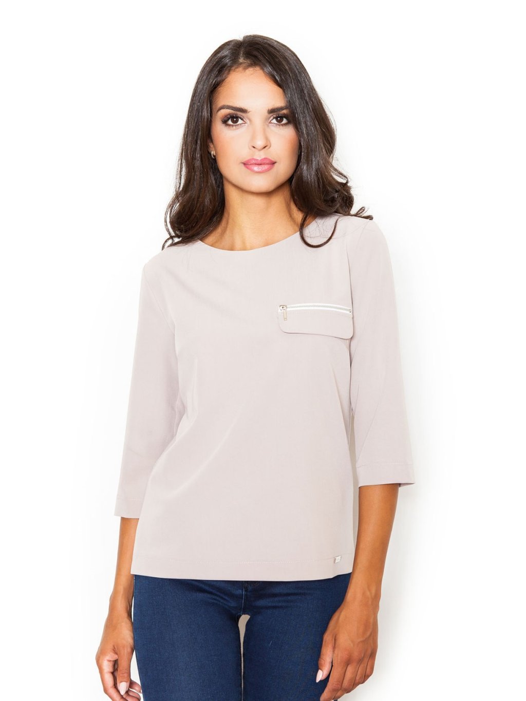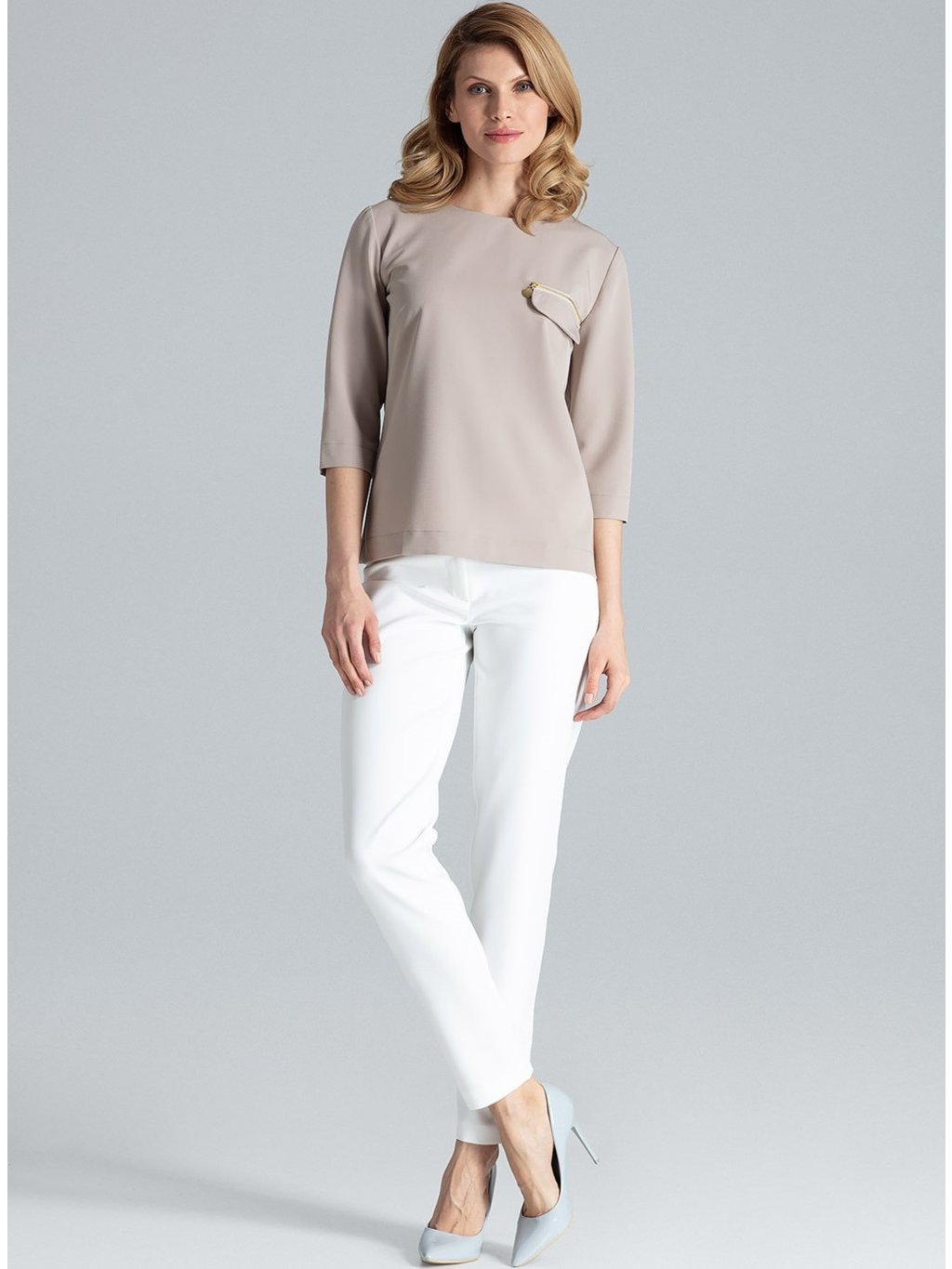 Elegáns bézs cipzáras blúz