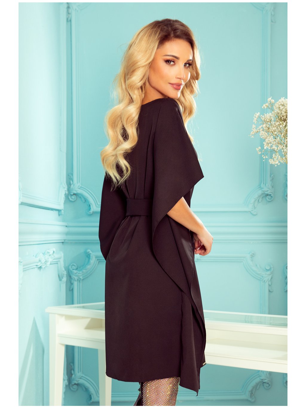 Fekete, testhezálló rövid ujjú ruha díszes nyakkivágással