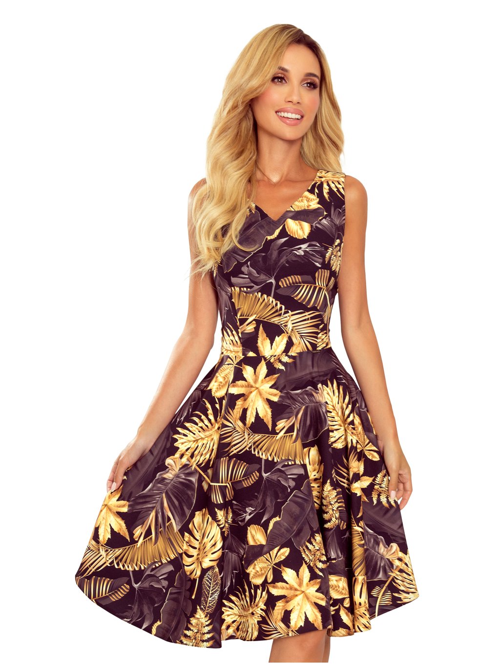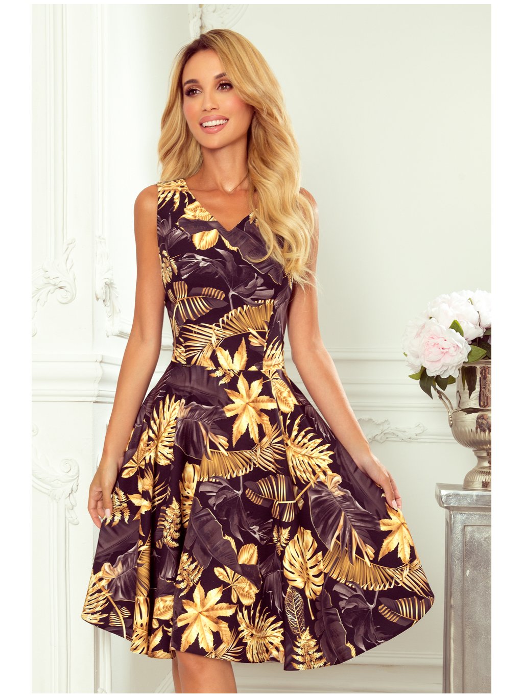 Elegáns fekete/sárga levél mintás ruha ARIANNA