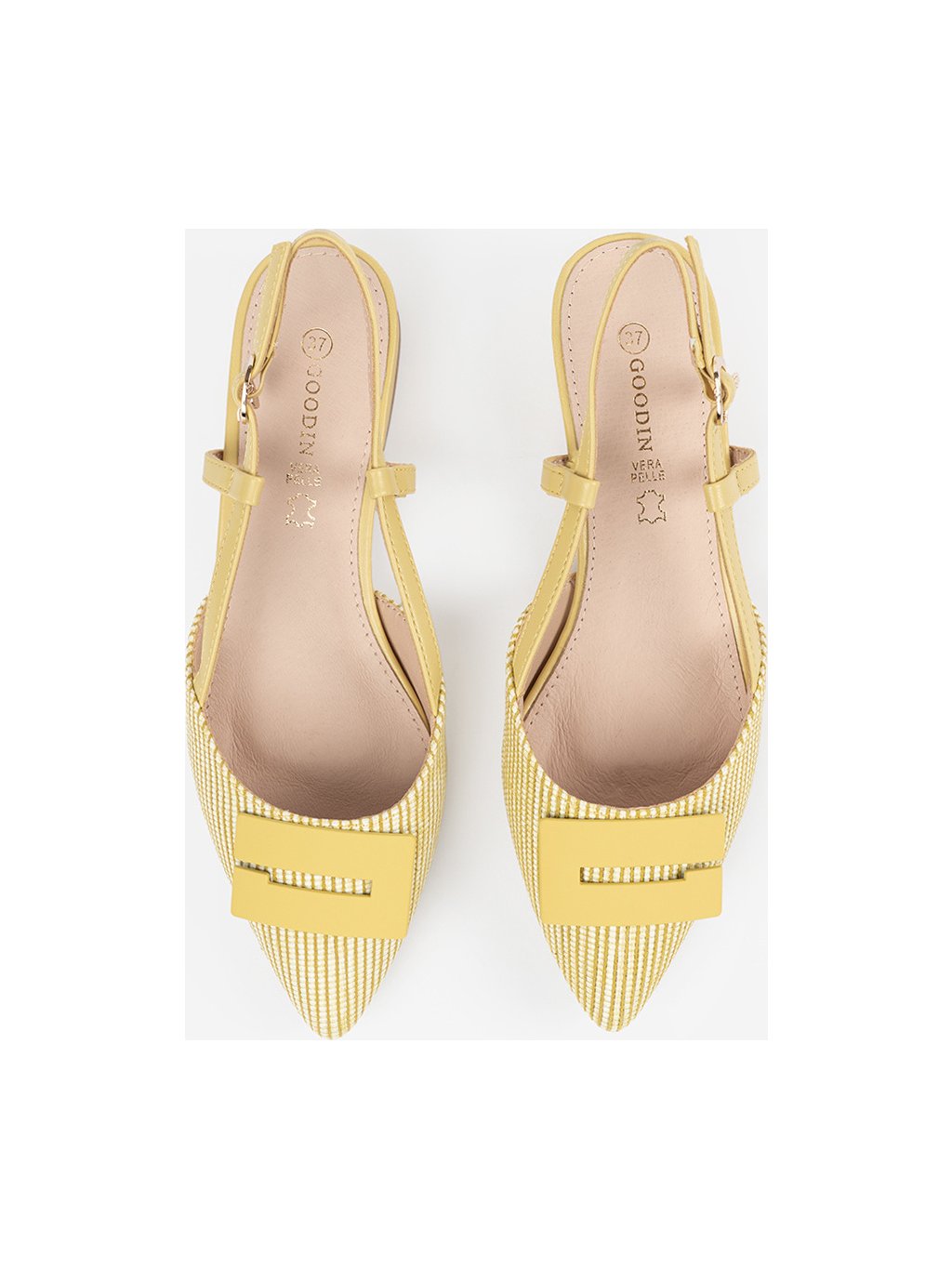 Elegáns női sárga, alacsony sarkú cipő, 2,5 cm-es sarok
