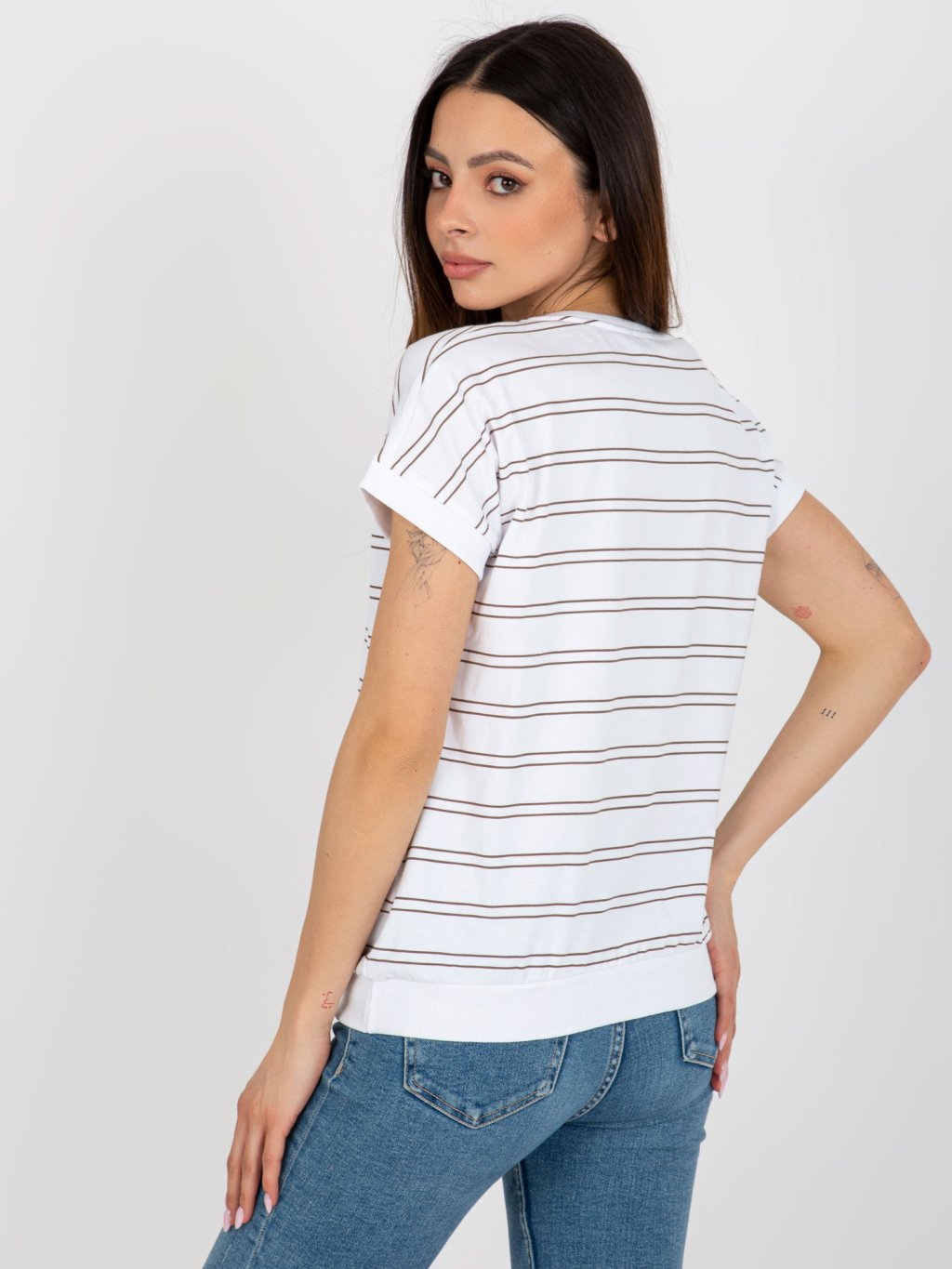 Fehér-barna csíkos póló szívvel