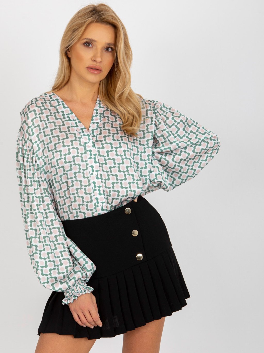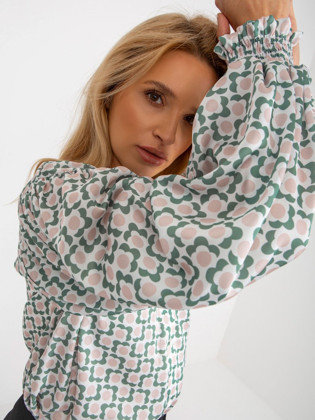 Fehér-bézs mintás ing széles ujjú